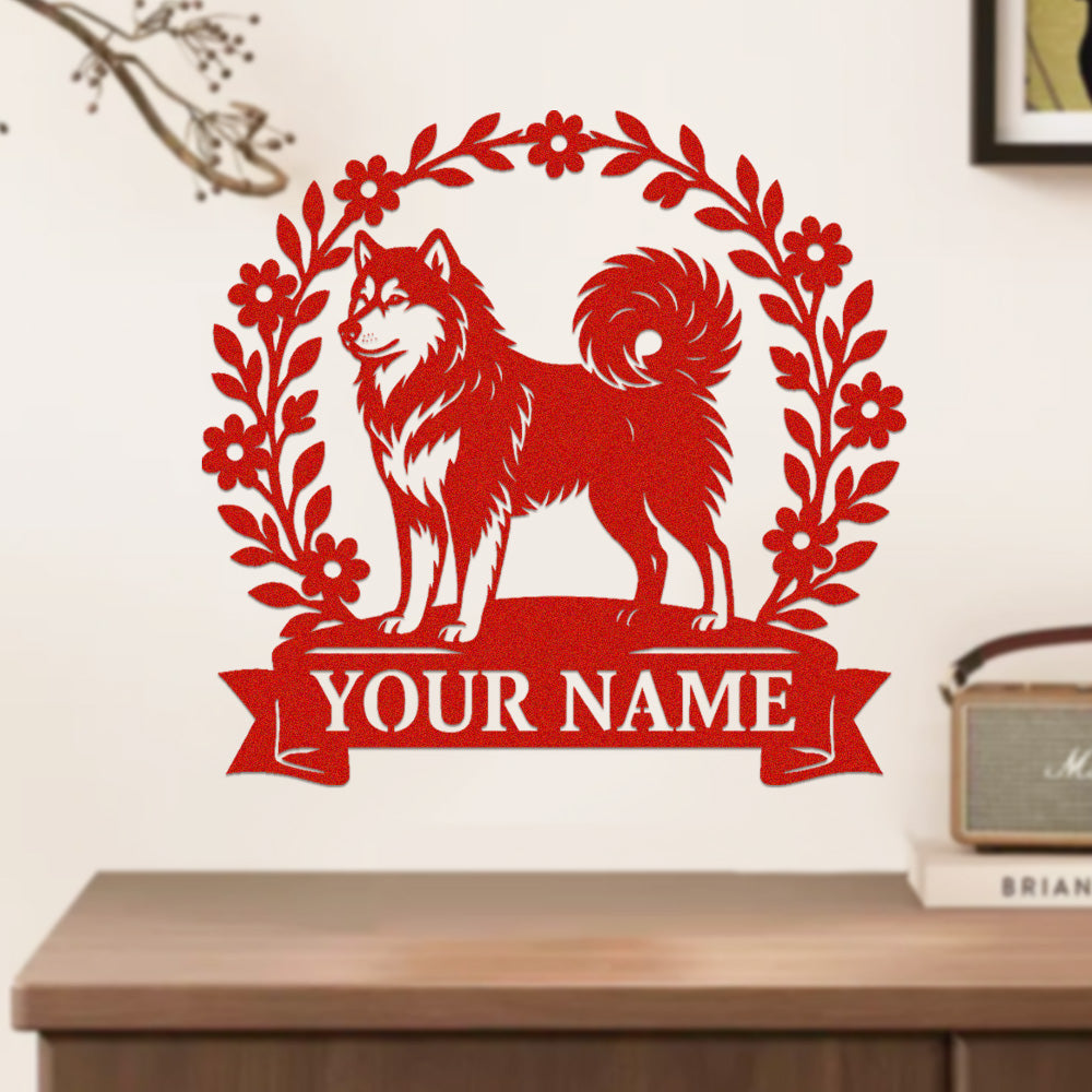 Akita Wreath Metal Wall Art Dog Lover Personalized Memorial Metal Sign