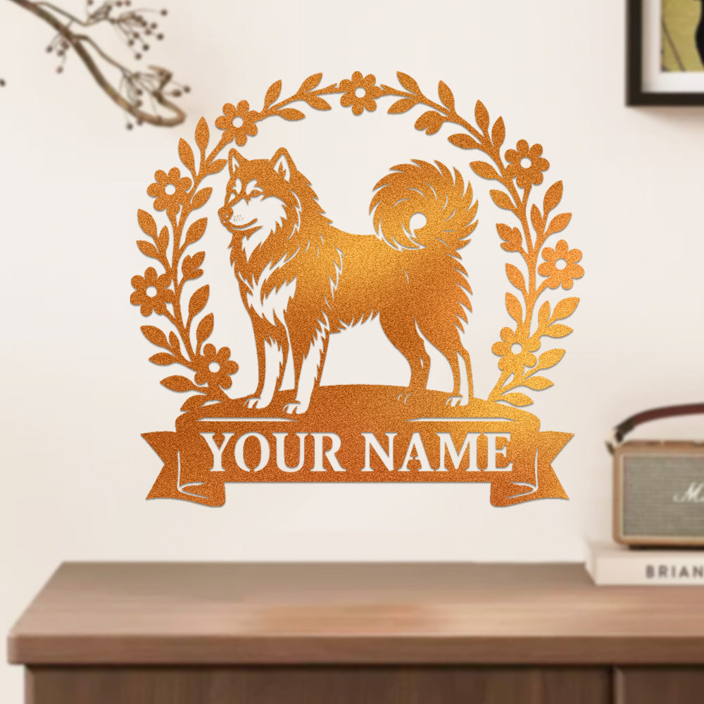 Samoyed Wreath Metal Wall Art Dog Lover Personalized Memorial Metal Sign