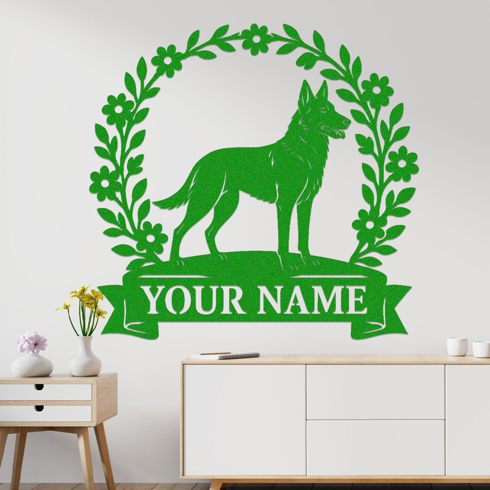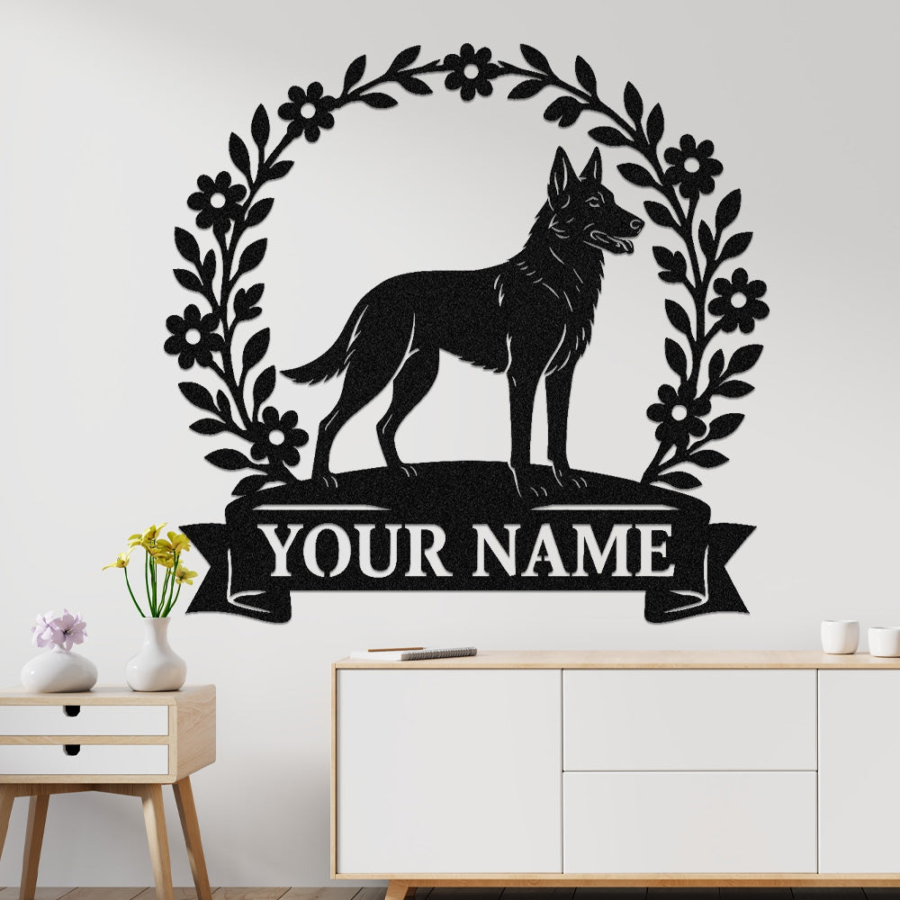 Belgian Malinois Wreath Metal Wall Art Dog Lover Personalized Memorial Metal Sign