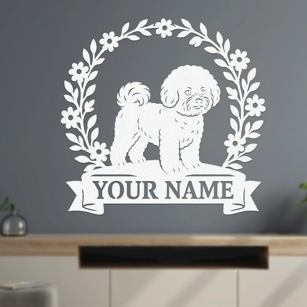 Bichon Wreath Metal Wall Art Dog Lover Personalized Memorial Metal Sign