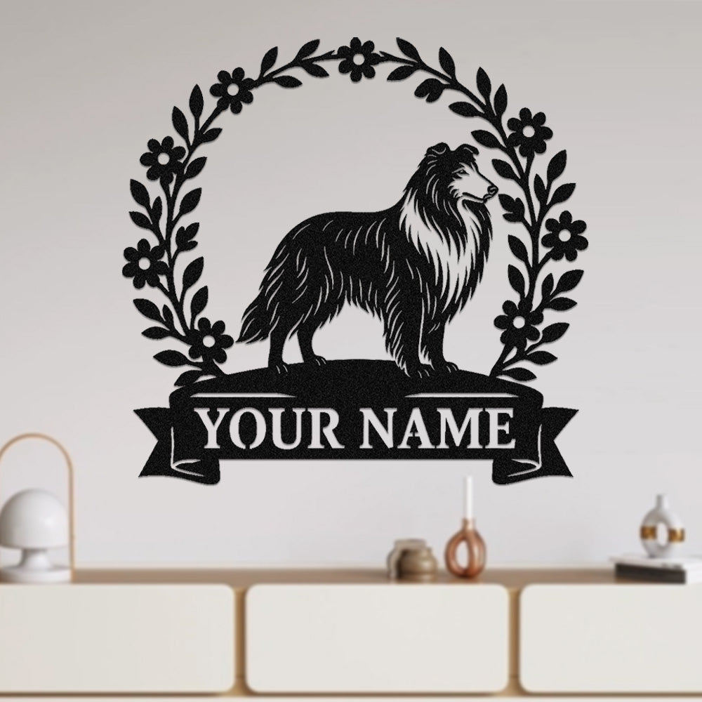 Collie Wreath Metal Wall Art Dog Lover Personalized Memorial Metal Sign