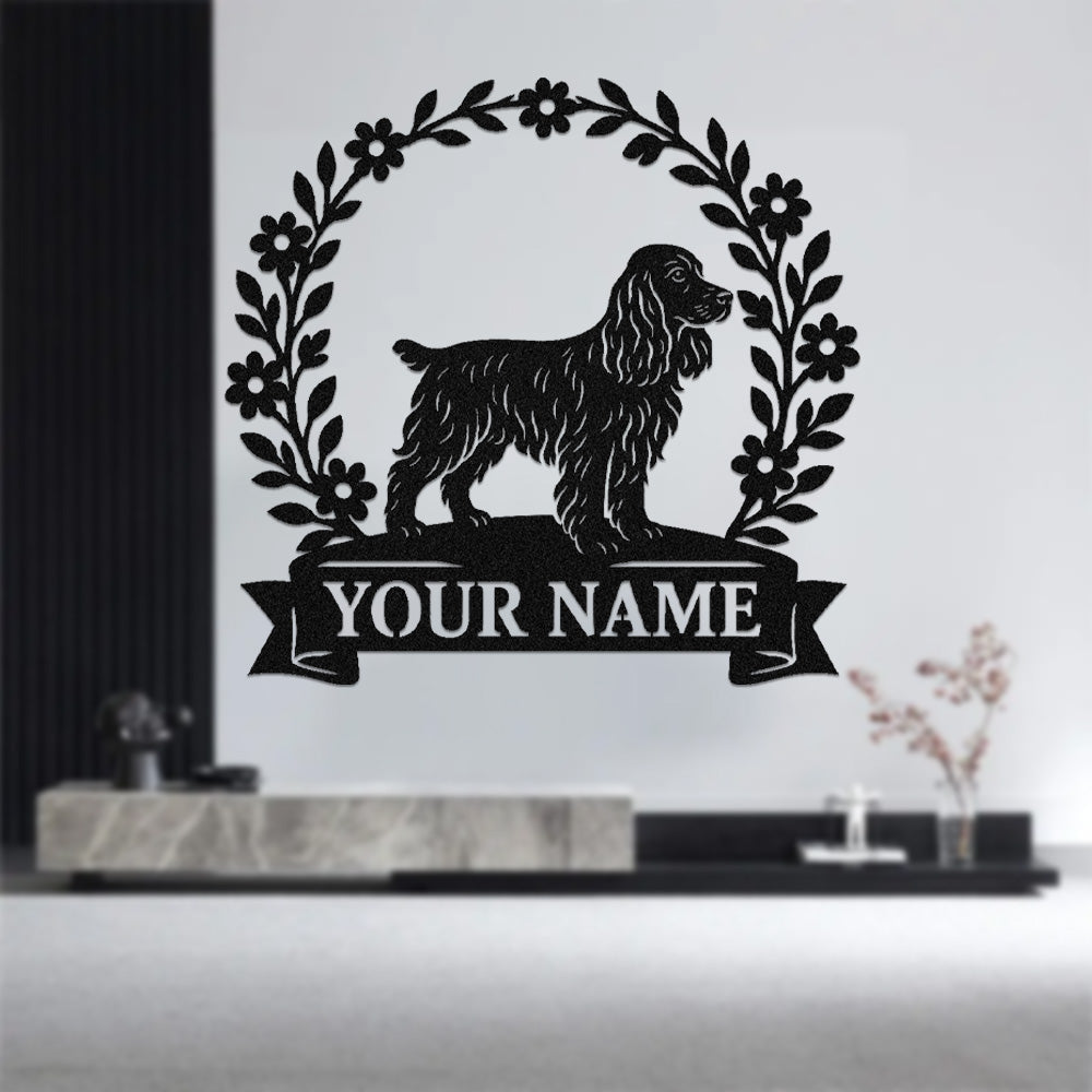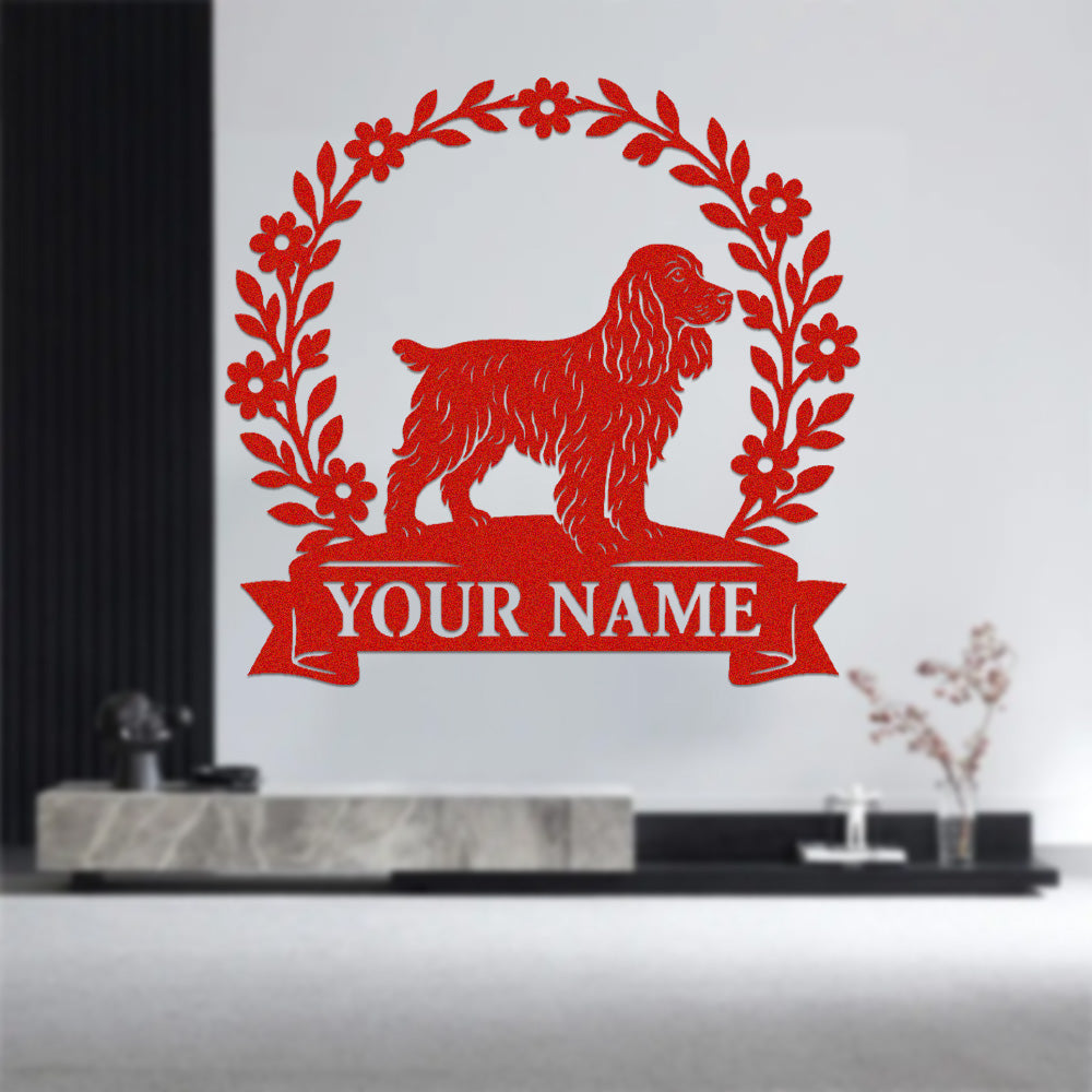 English Cocker Spaniel Wreath Metal Wall Art Dog Lover Personalized Memorial Metal Sign