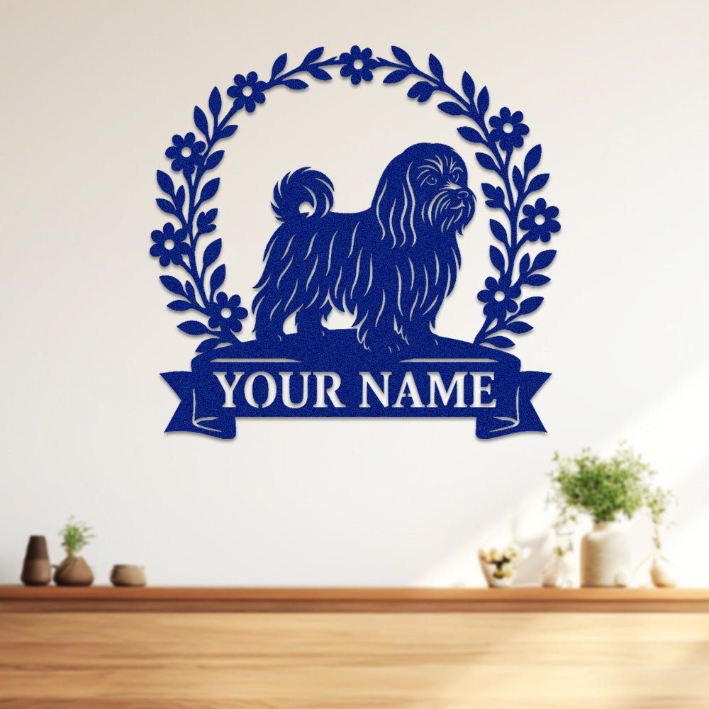 Tibetan Spaniel Wreath Metal Wall Art Dog Lover Personalized Memorial Metal Sign