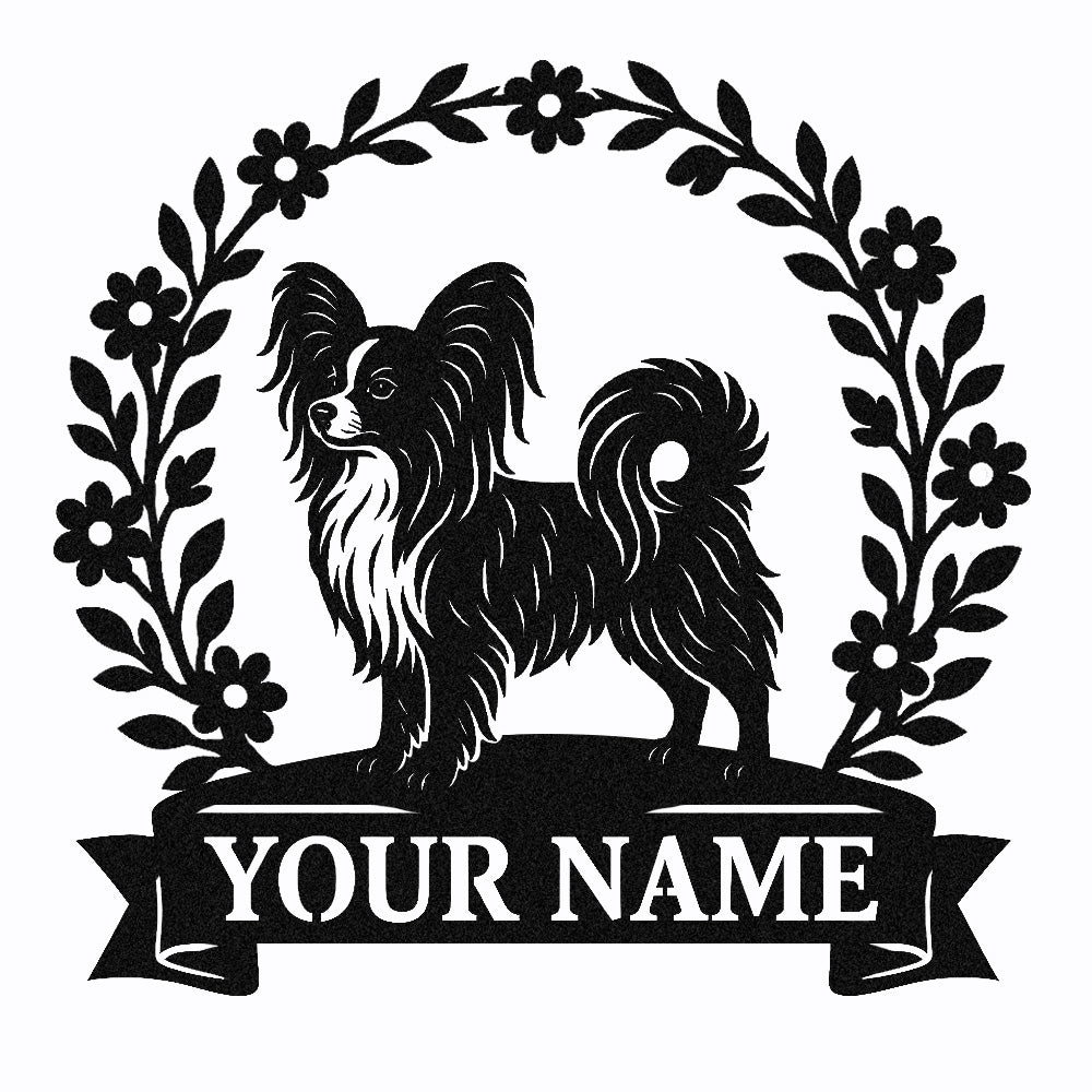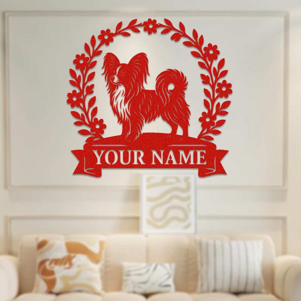 Papillon Wreath Metal Wall Art Dog Lover Personalized Memorial Metal Sign