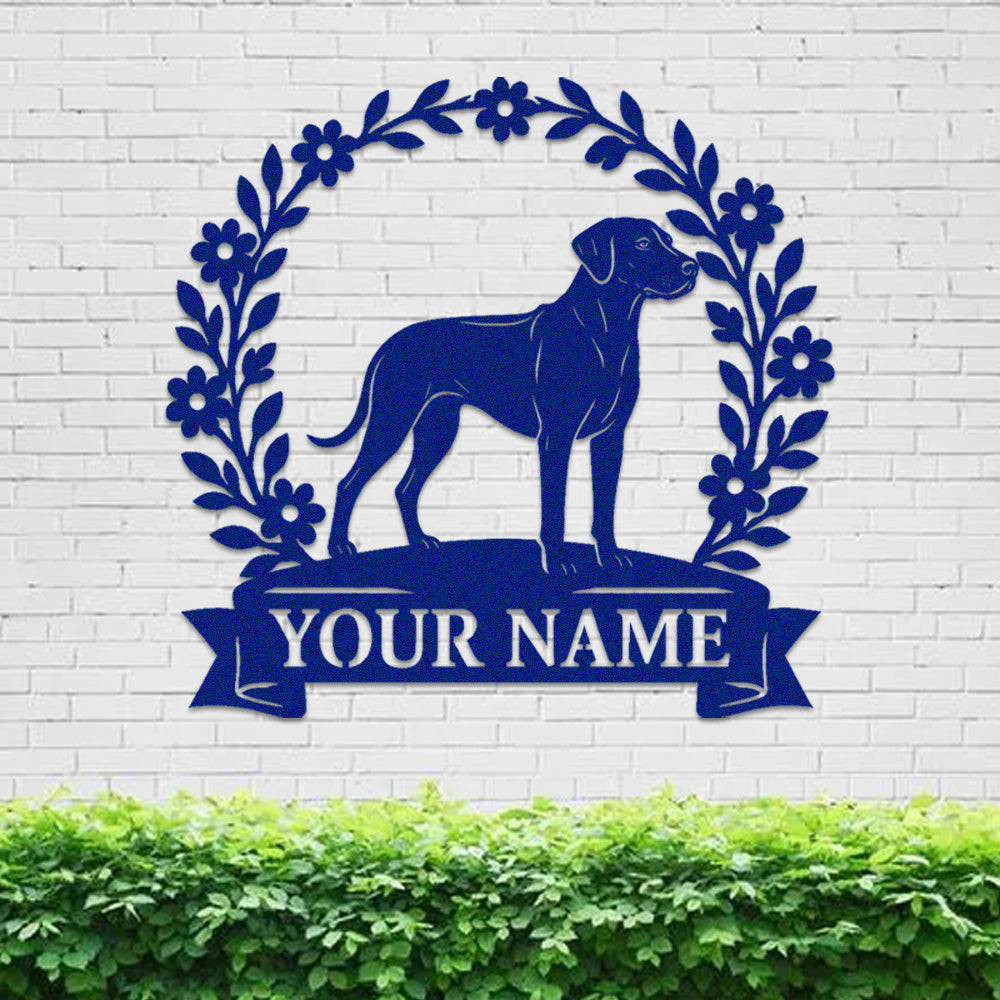 Rhodesian Ridgeback Wreath Metal Wall Art Dog Lover Personalized Memorial Metal Sign