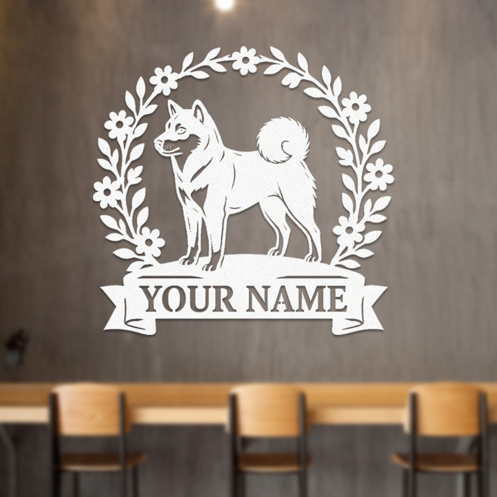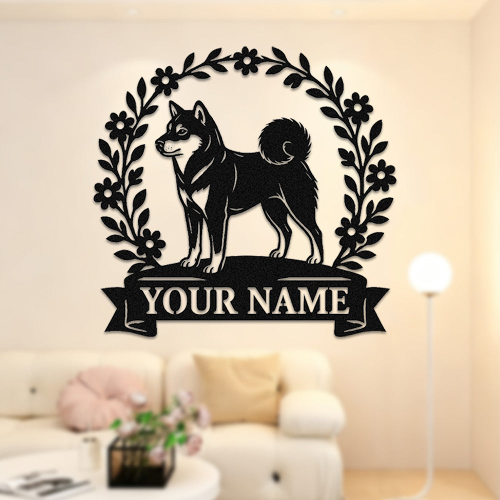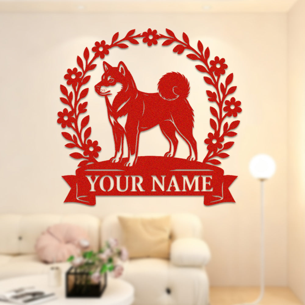Shiba Inu Wreath Metal Wall Art Dog Lover Personalized Memorial Metal Sign