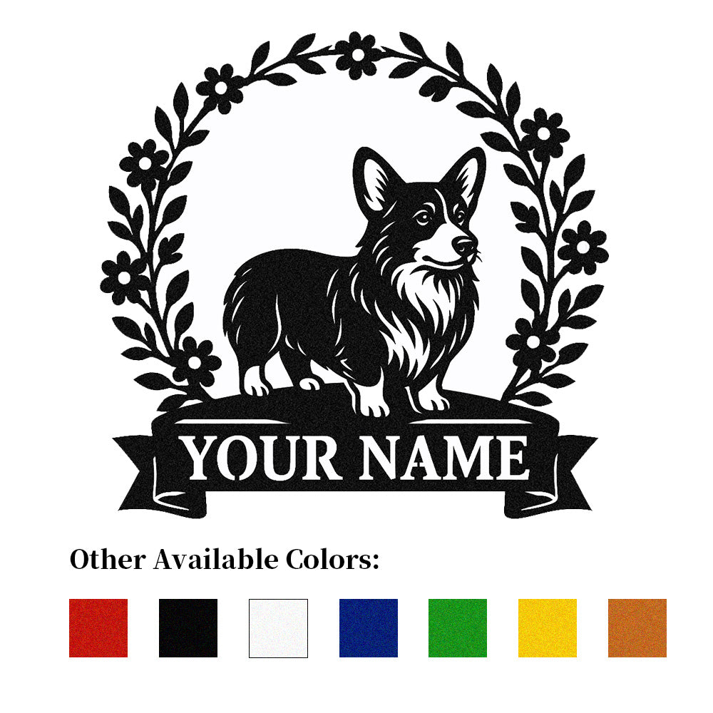 Welsh Corgi Wreath Metal Wall Art Dog Lover Personalized Memorial Metal Sign
