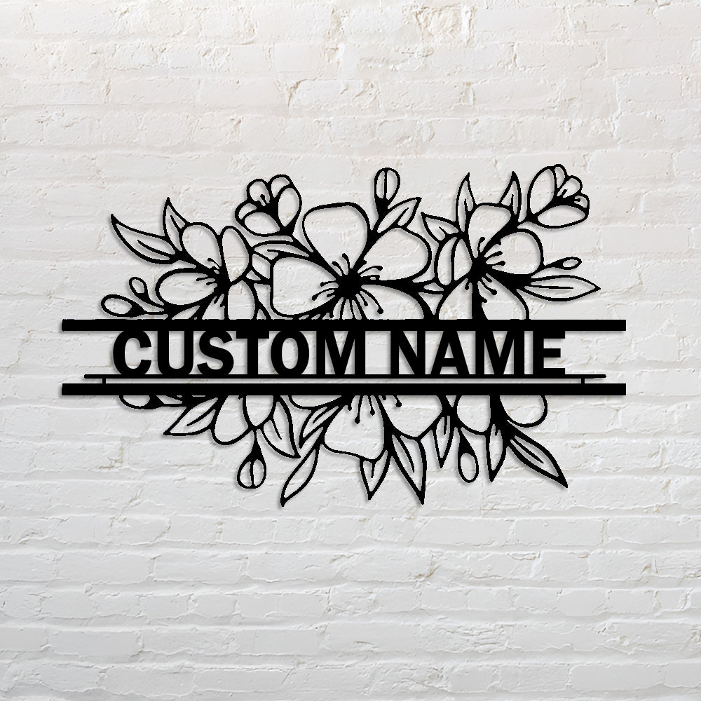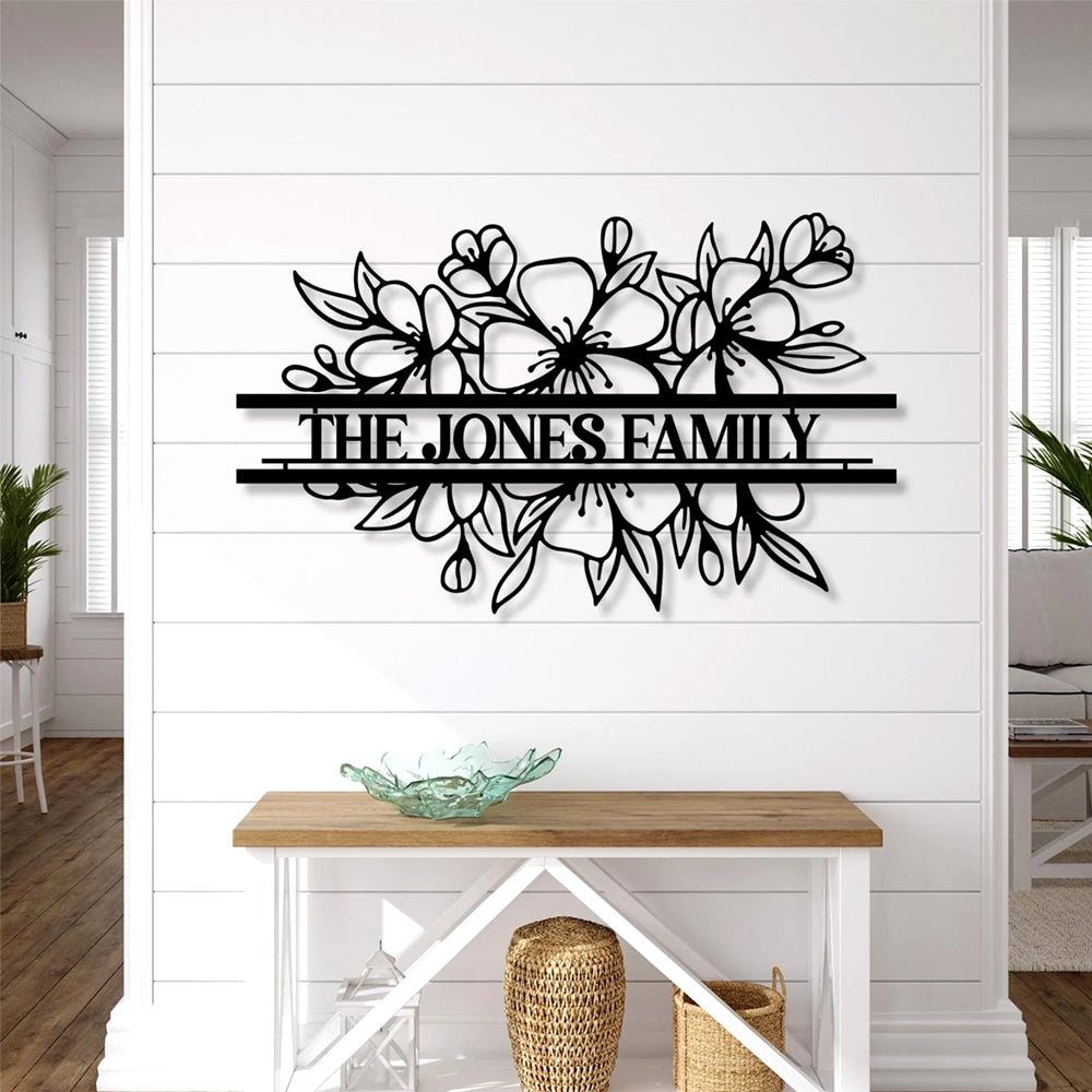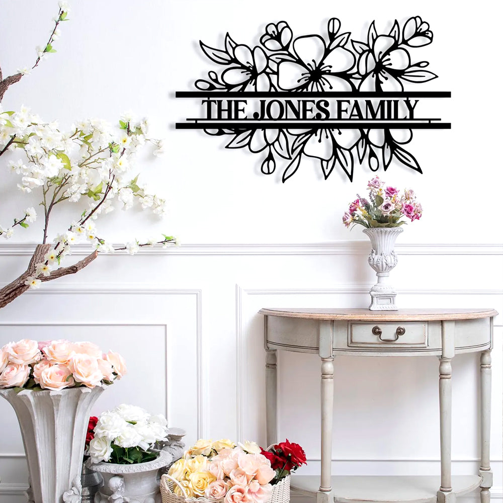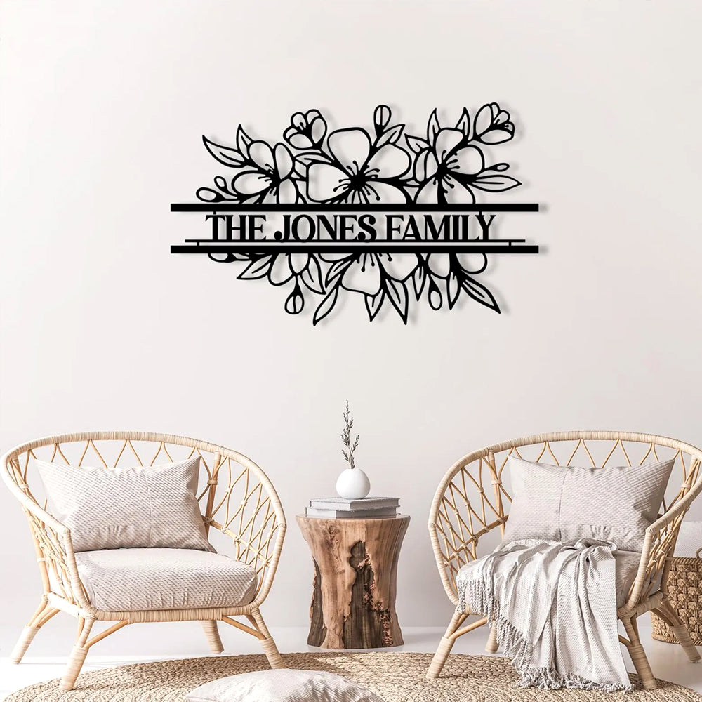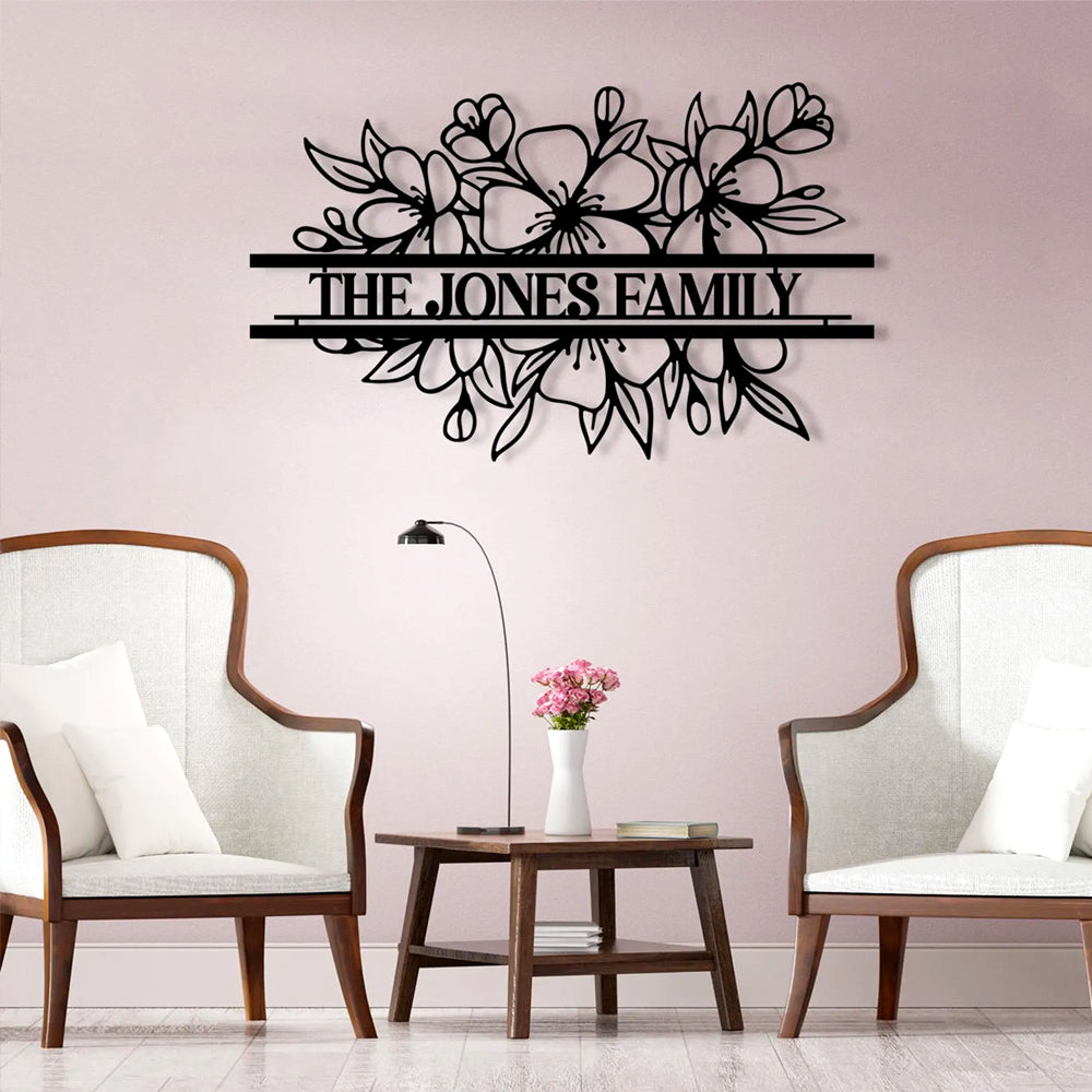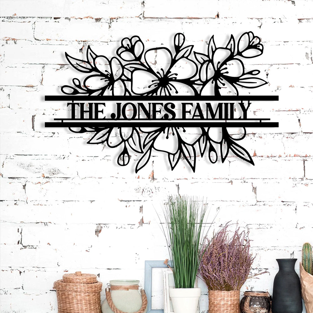 Custom Name Flower Family Sign Metal Wall Art Decoration