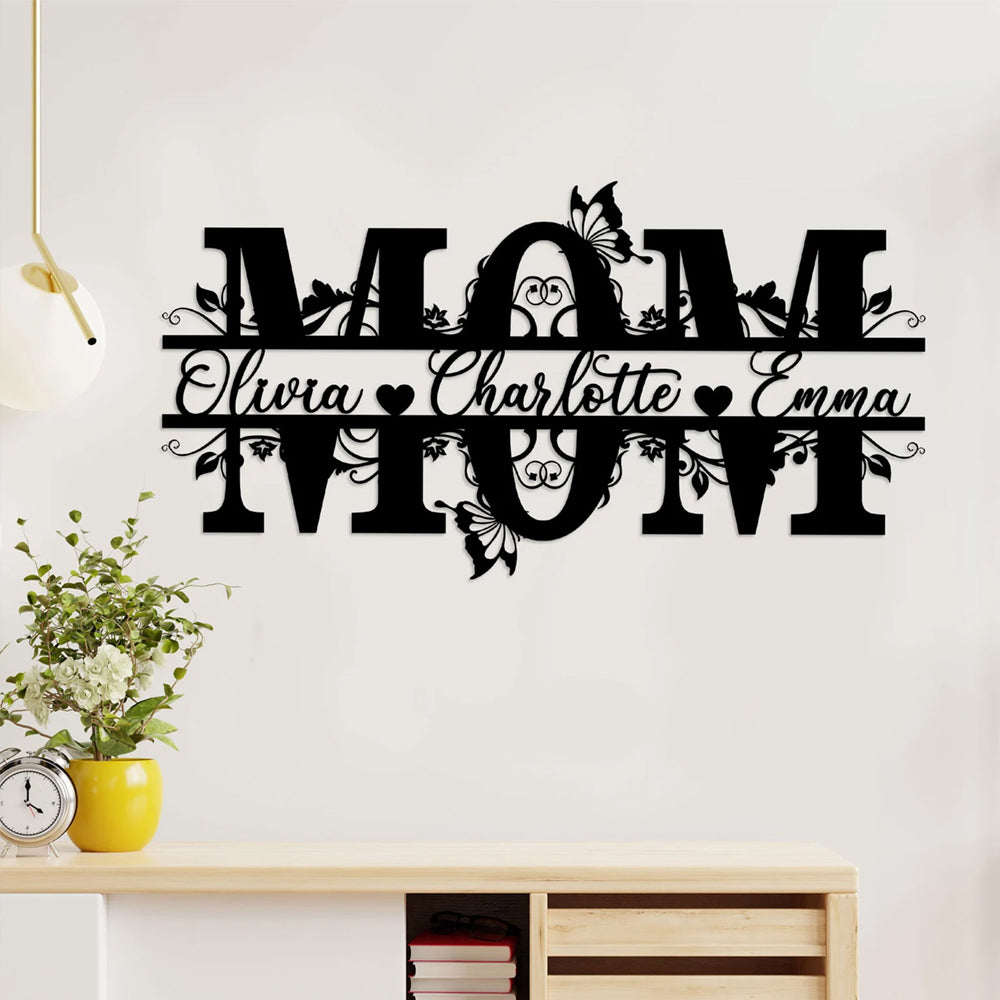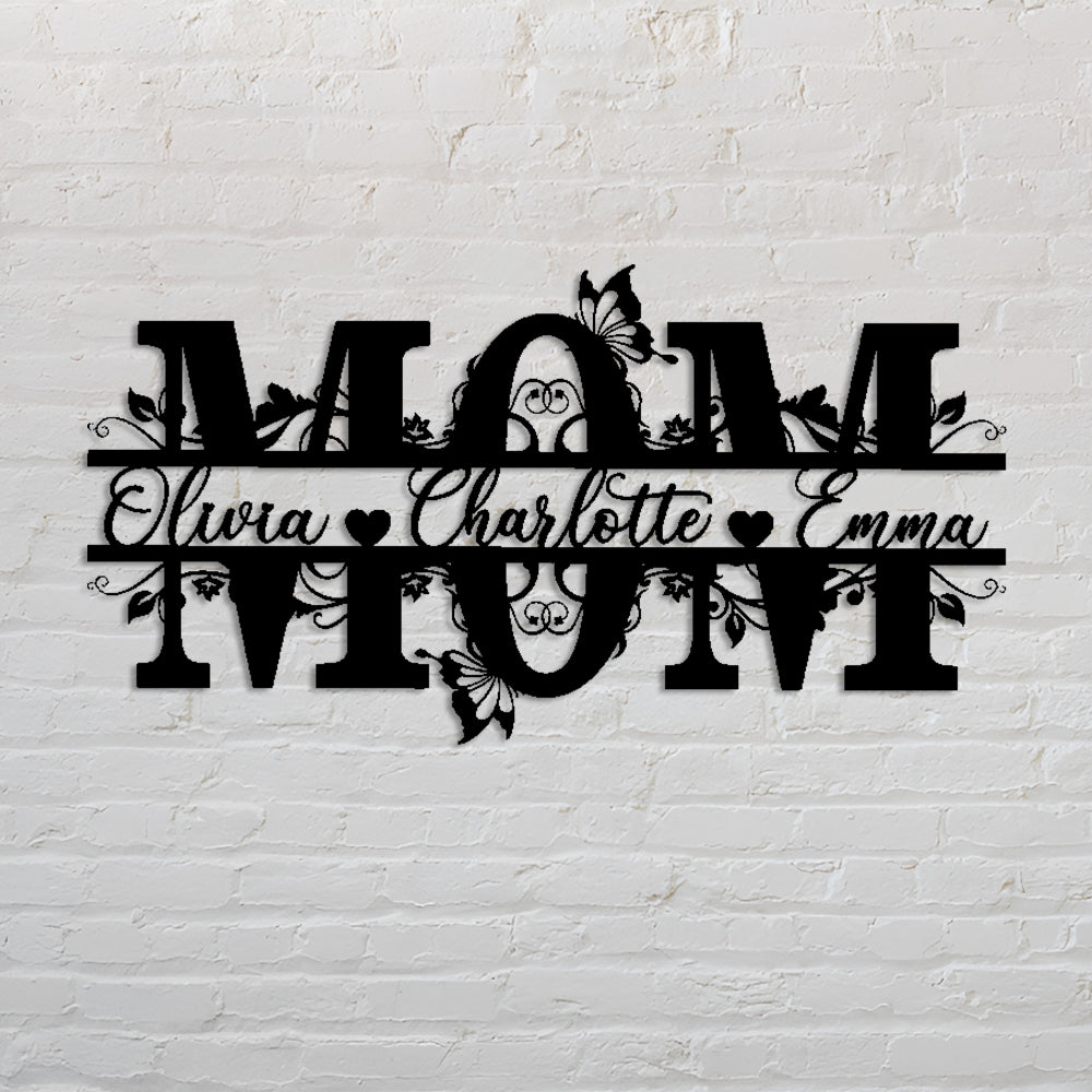 Custom Name Mom with Butterfly Metal Wall Art Decoration