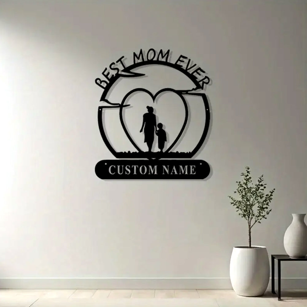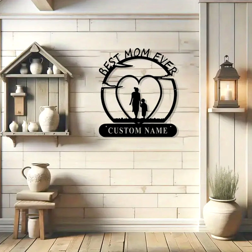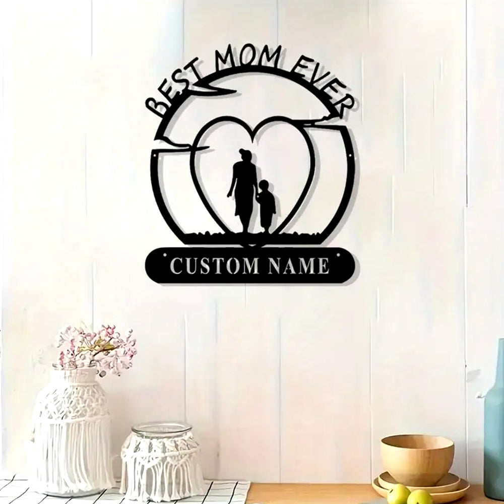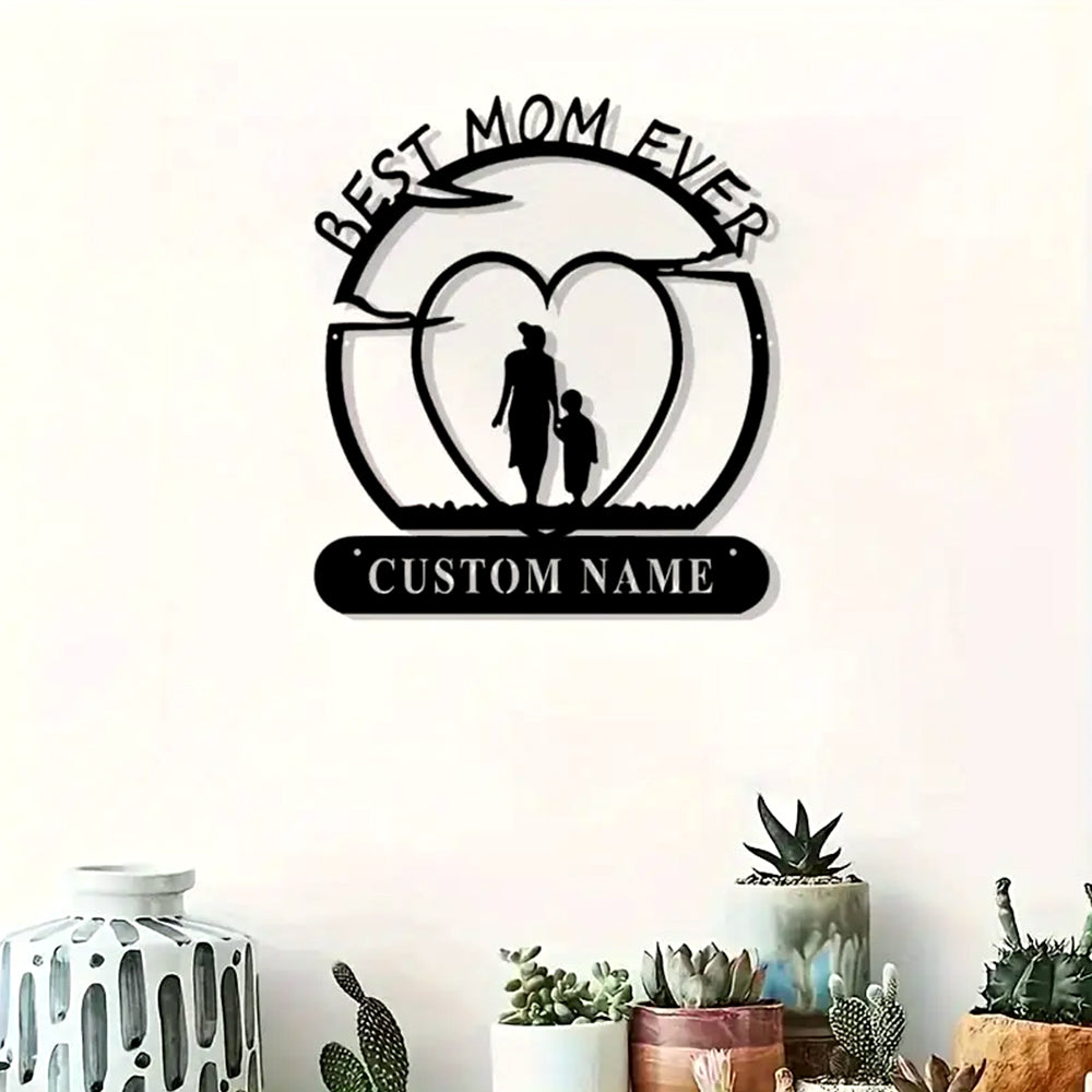 Personalized Custom Heart Design Best Mom Ever Metal Wall Art Decoration