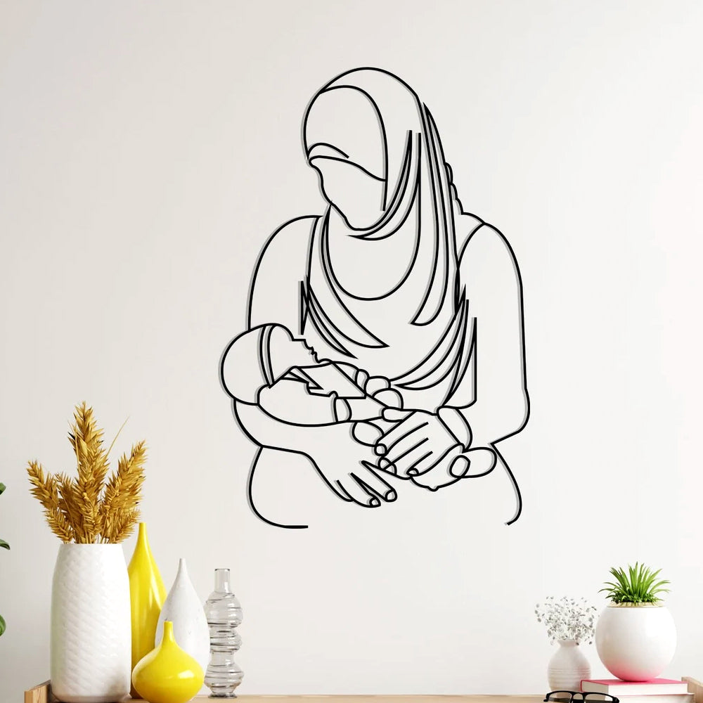Abstract Lines Mother and Baby Metal Wall Art Decoration