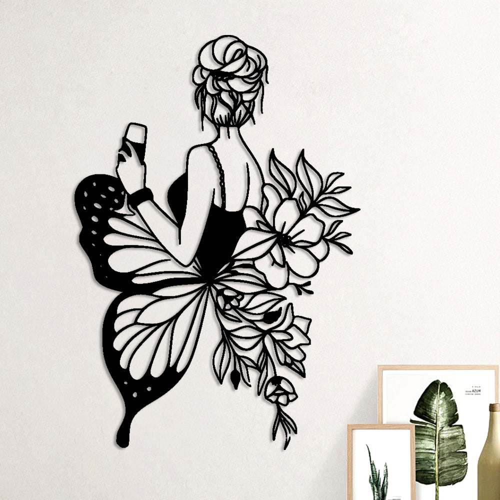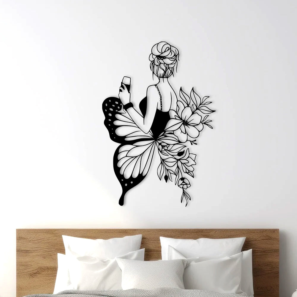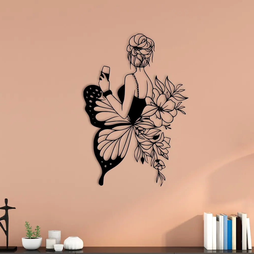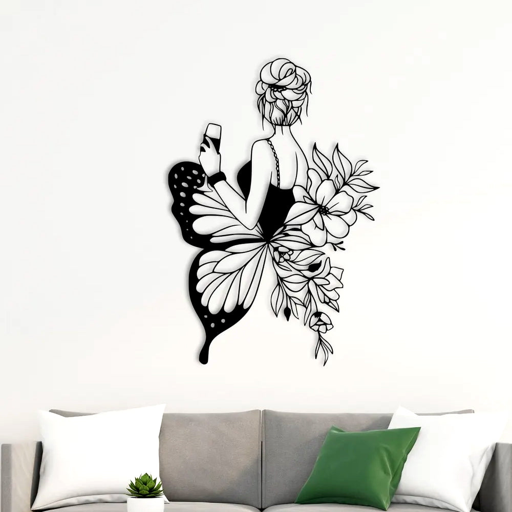 Elegant Butterfly Woman Metal Wall Art Decoration