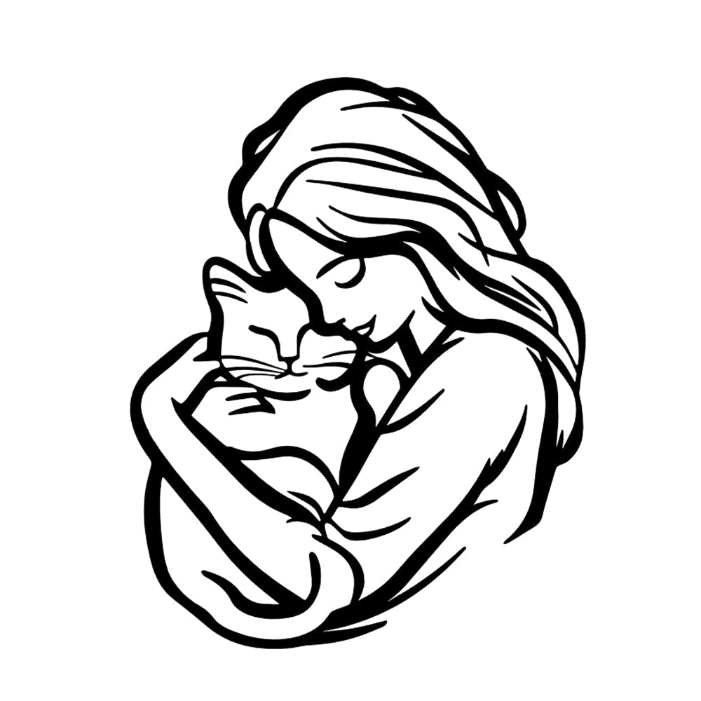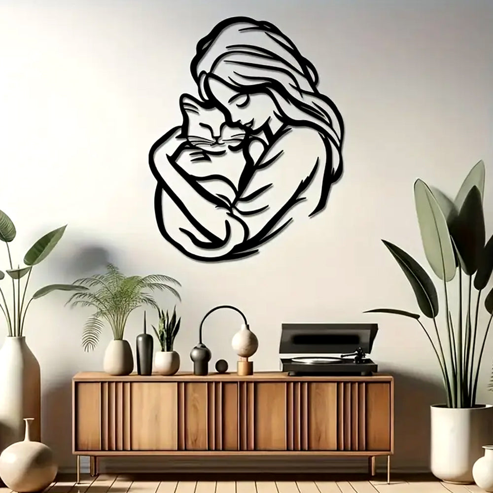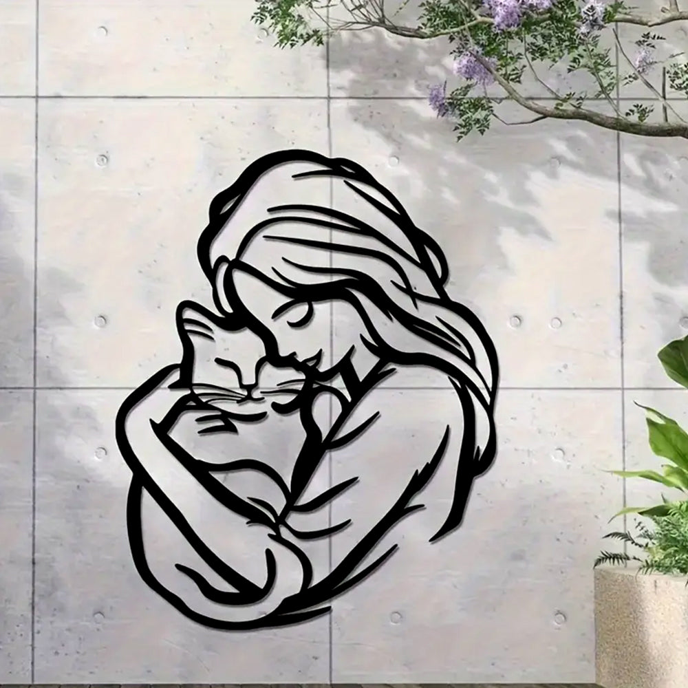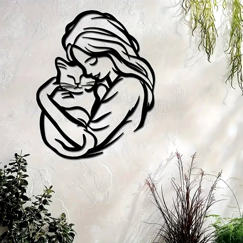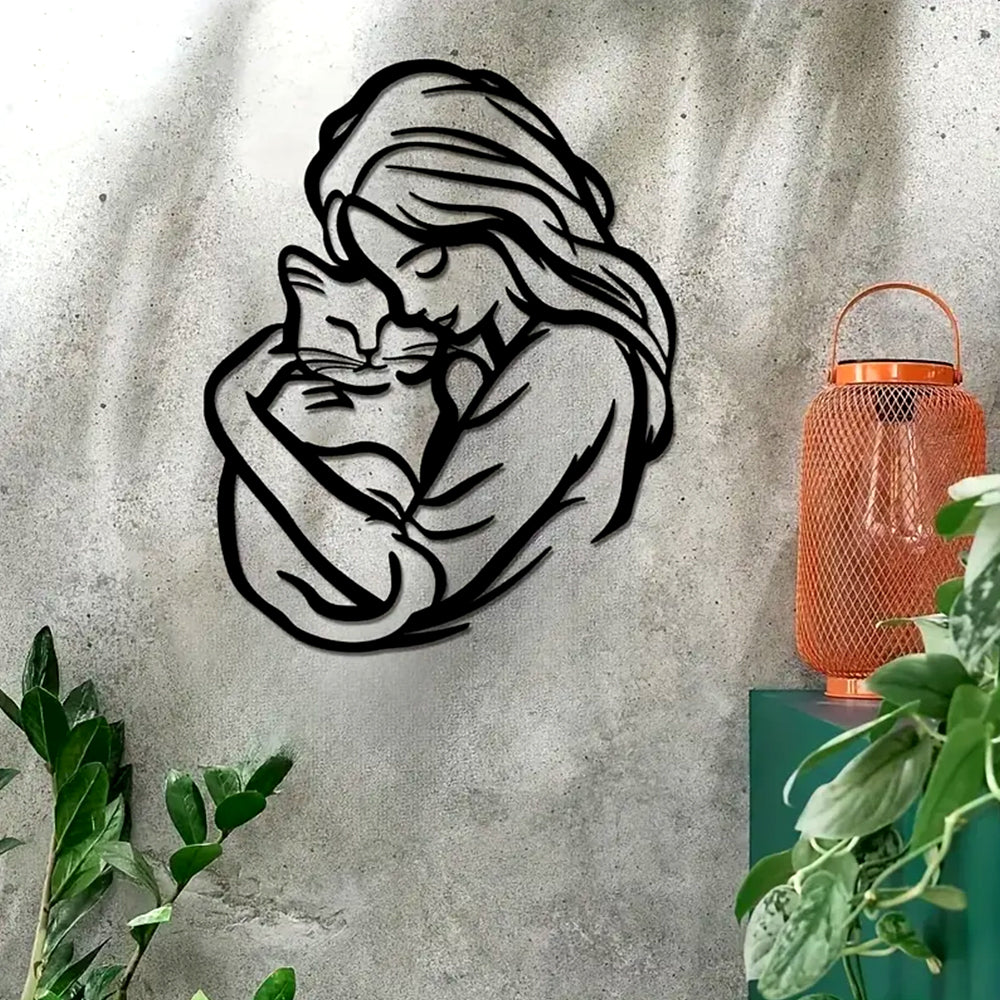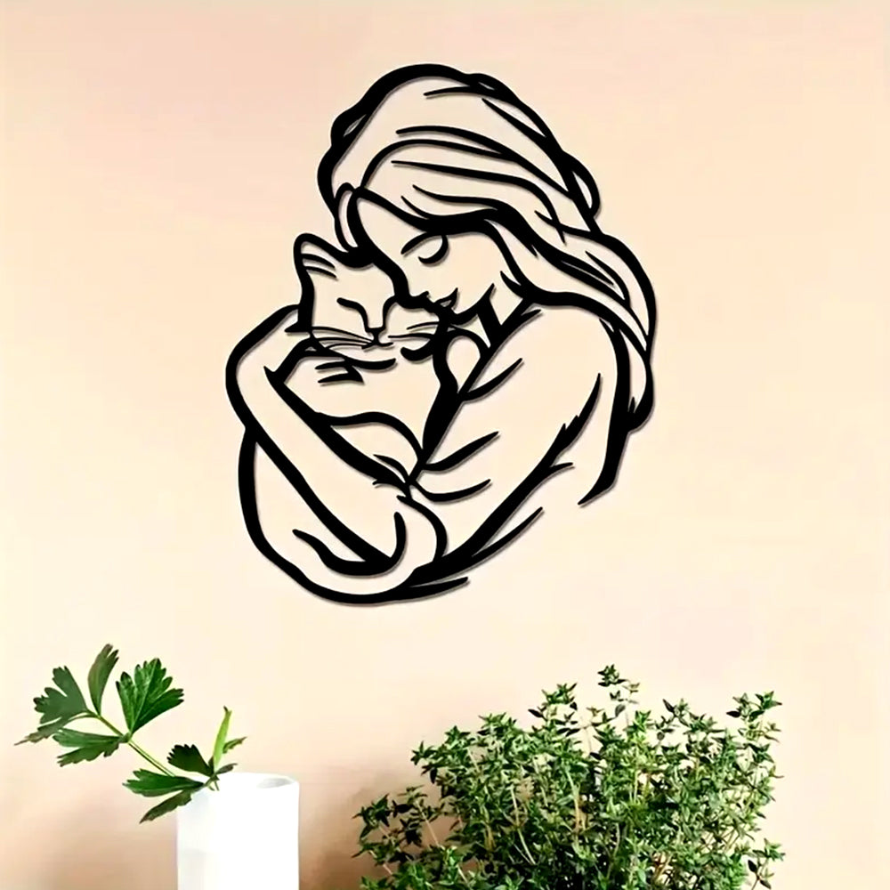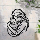 Elegant Woman and Cat Silhouette Metal Wall Art Decoration