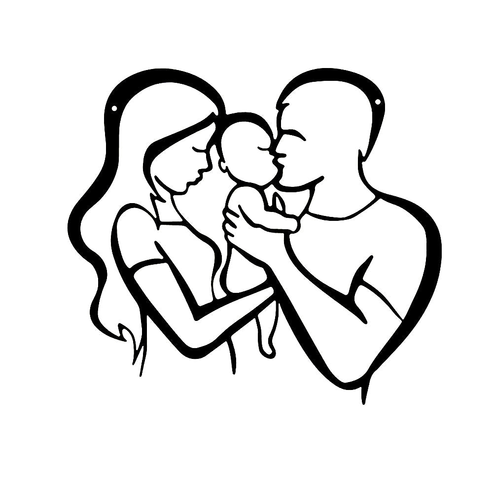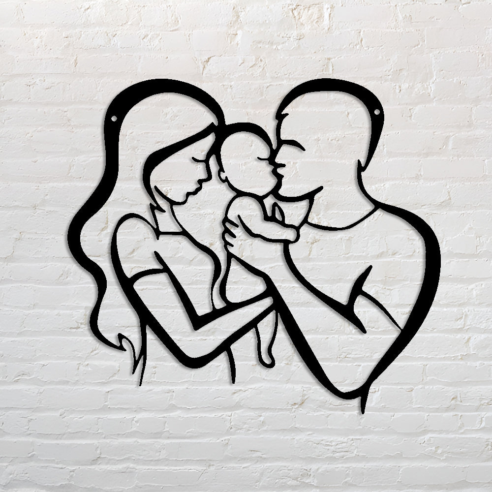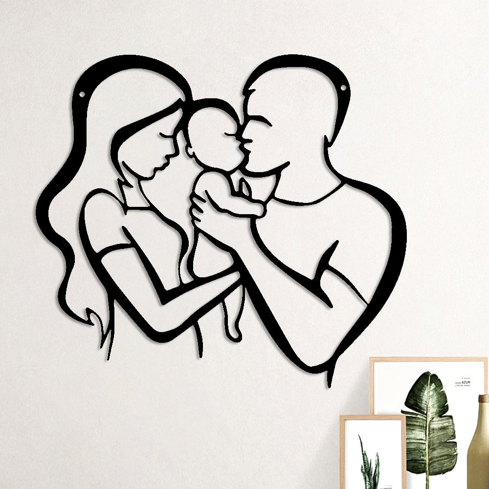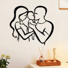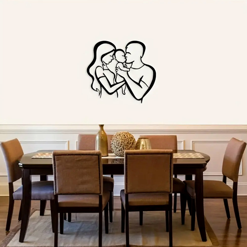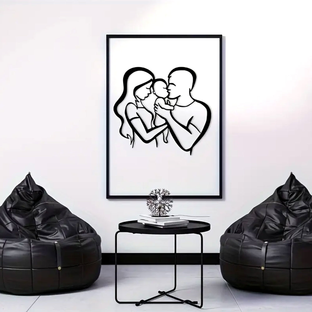 Minimalist Line Drawing of Mother and Father and Youngsters Metal Wall Art Decoration