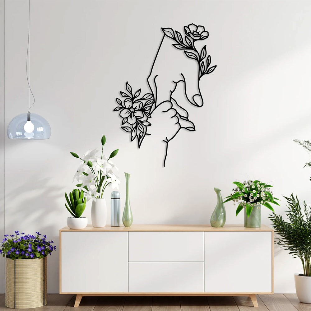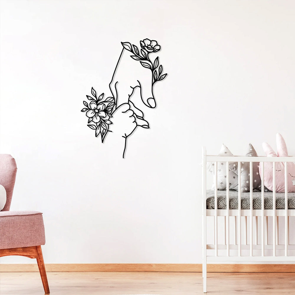 Mom and Baby with Flowers Metal Wall Art Decoration