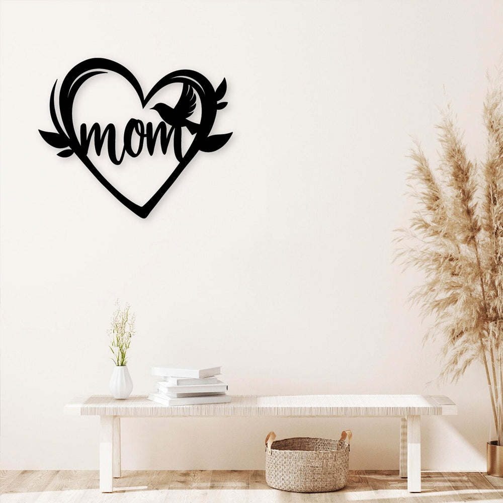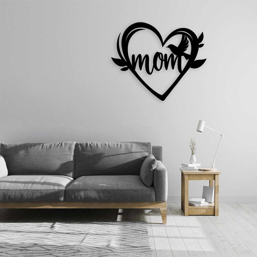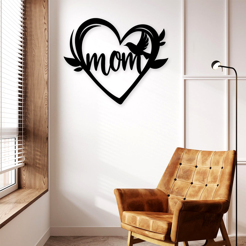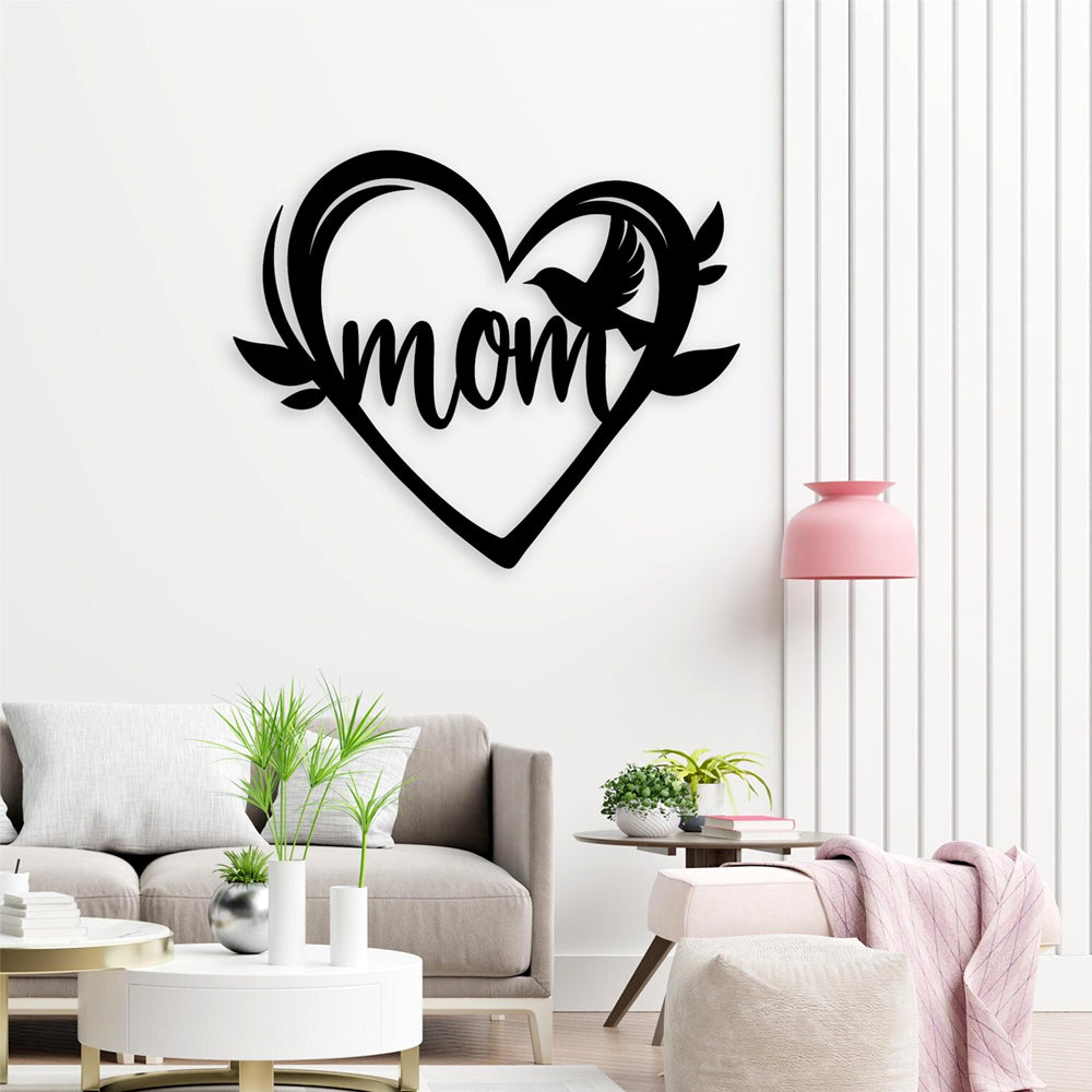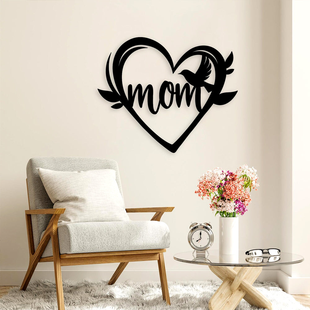Mom Metal Modern Heart and Bird Design Metal Wall Art Decoration