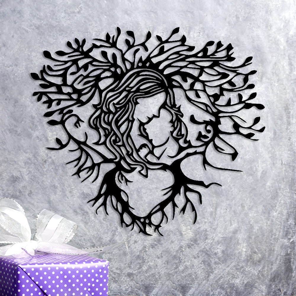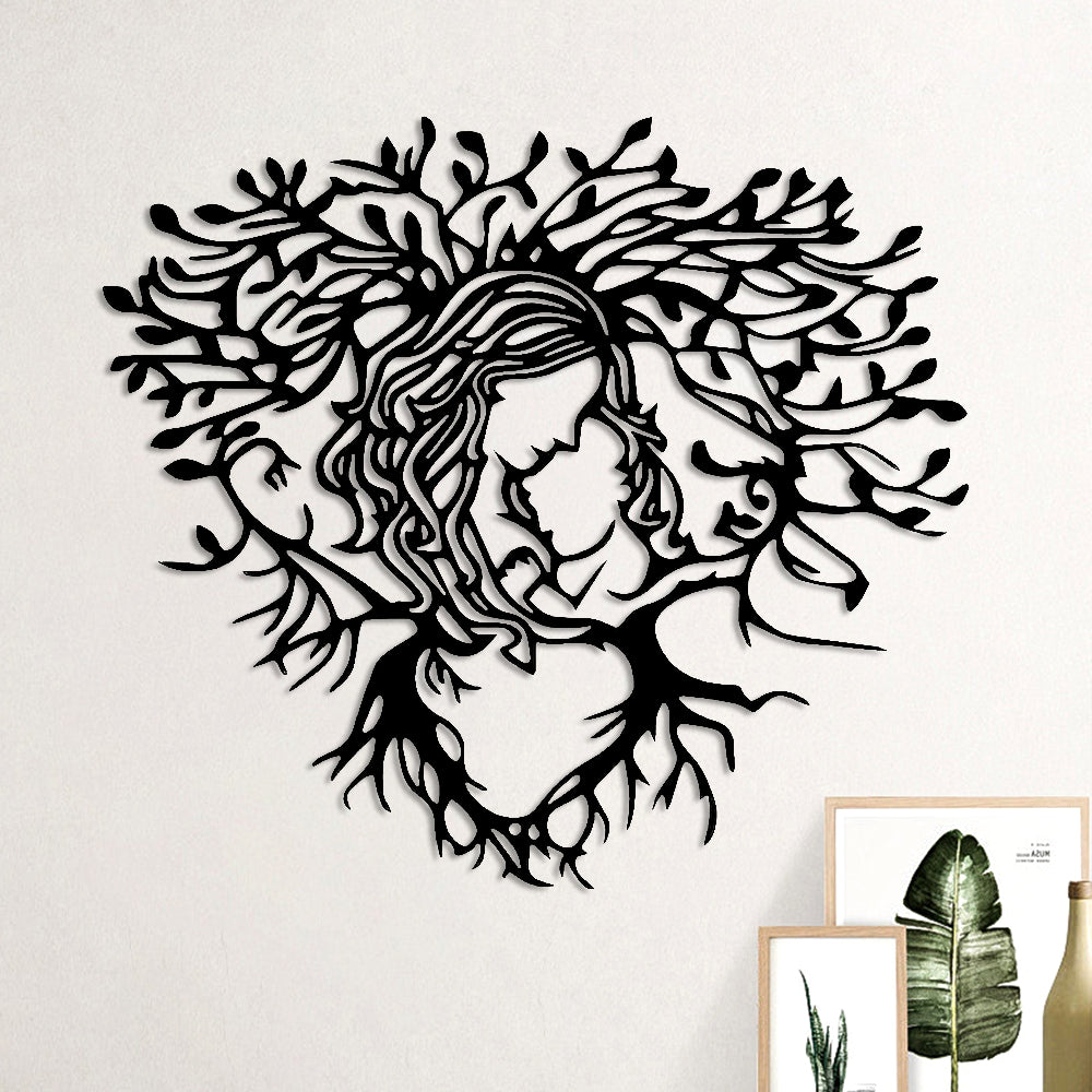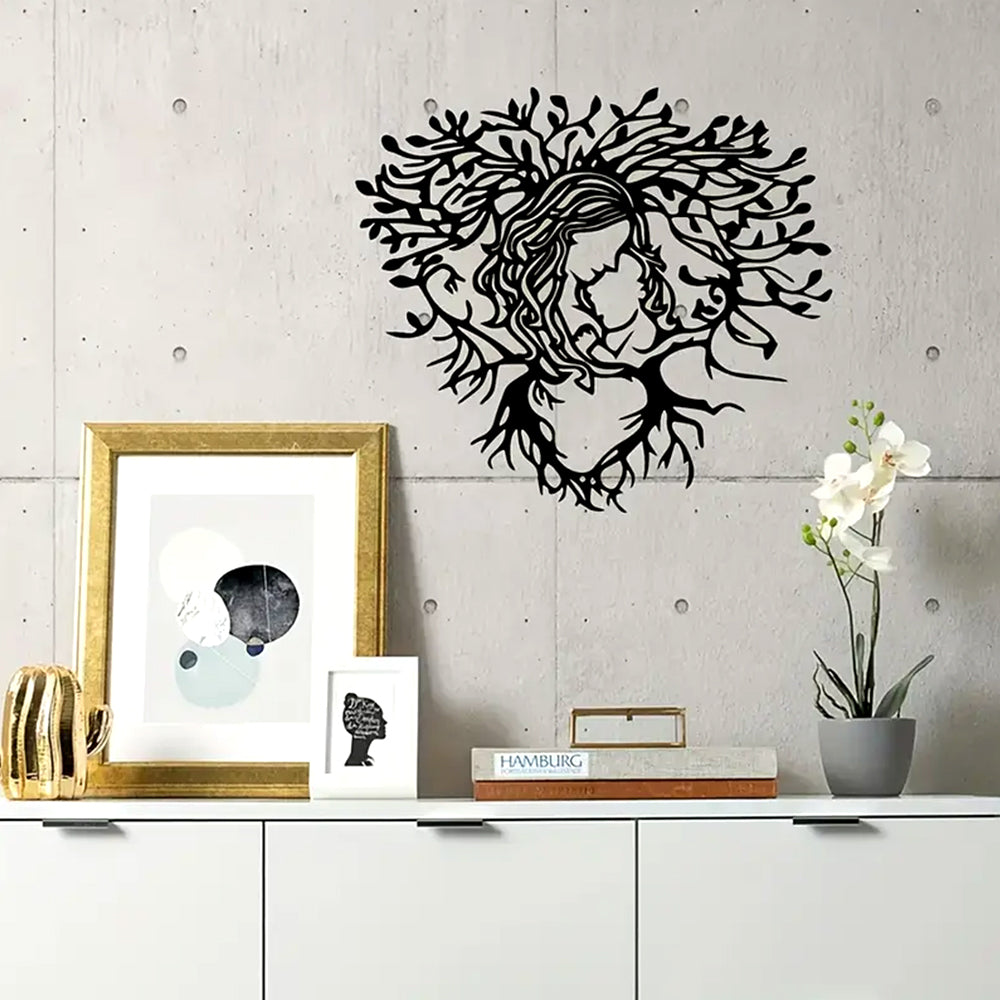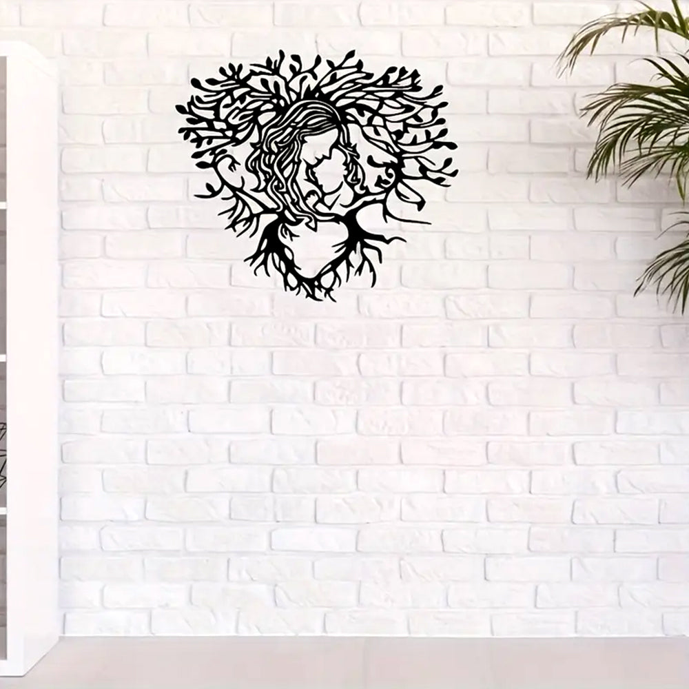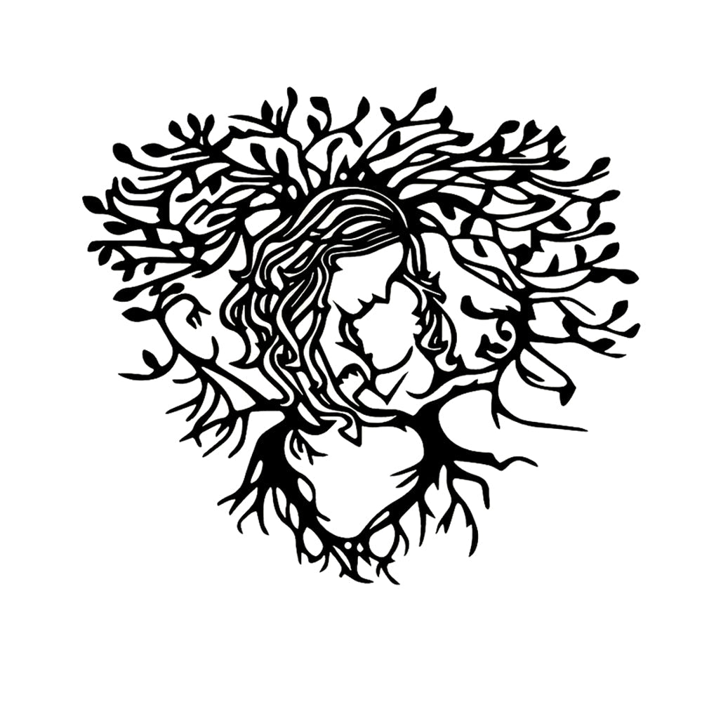 Mother and Youngsters Heart-Shaped Tree Design Metal Wall Art Decoration