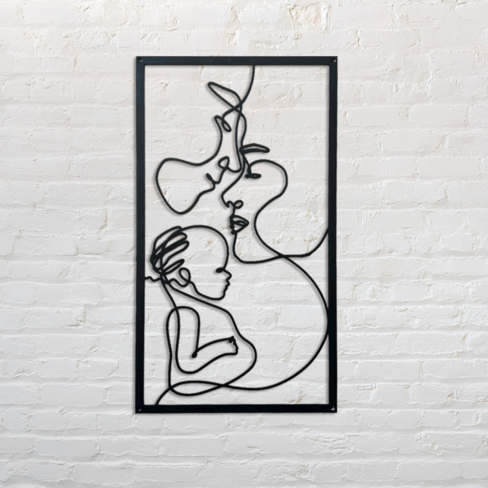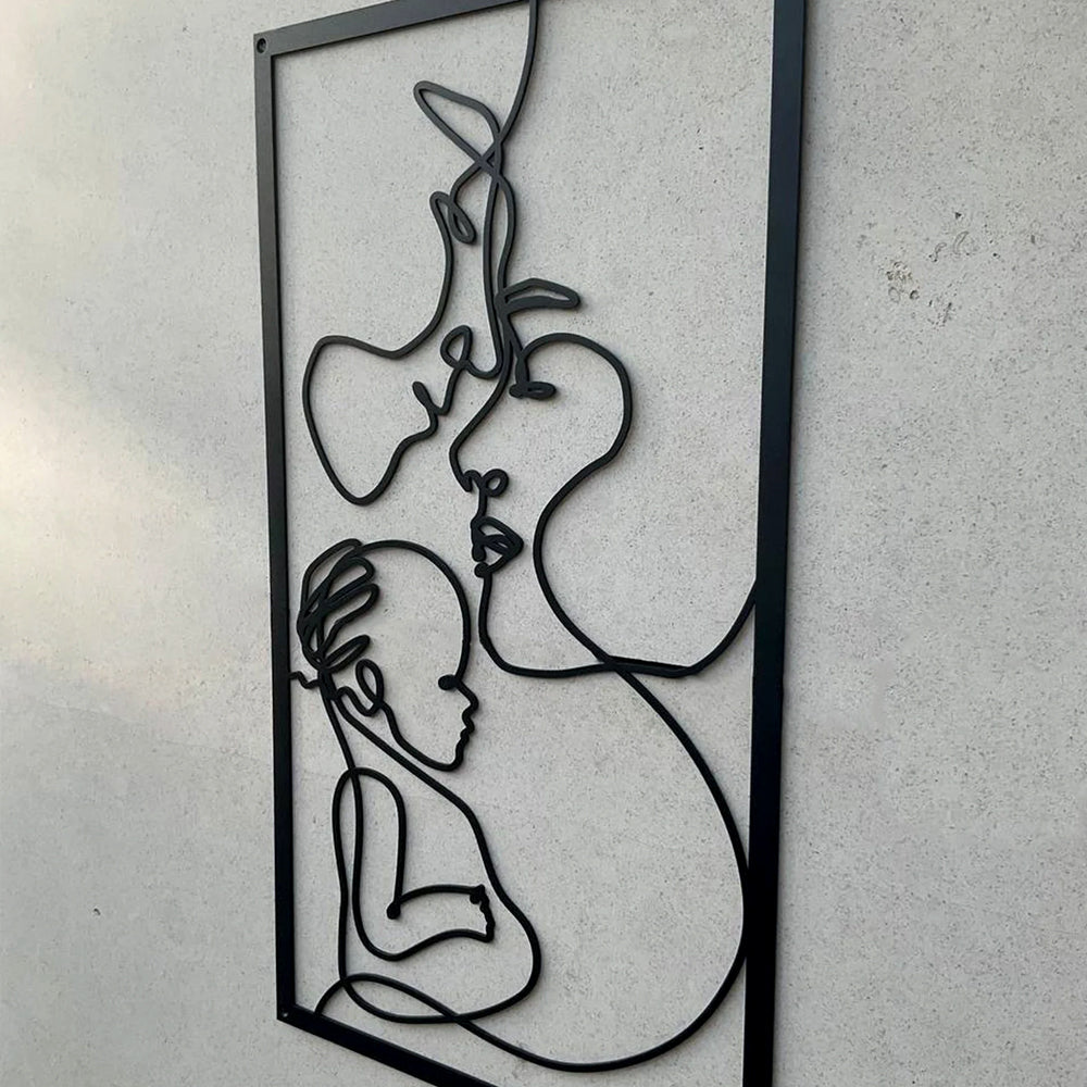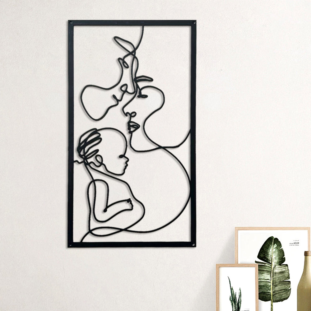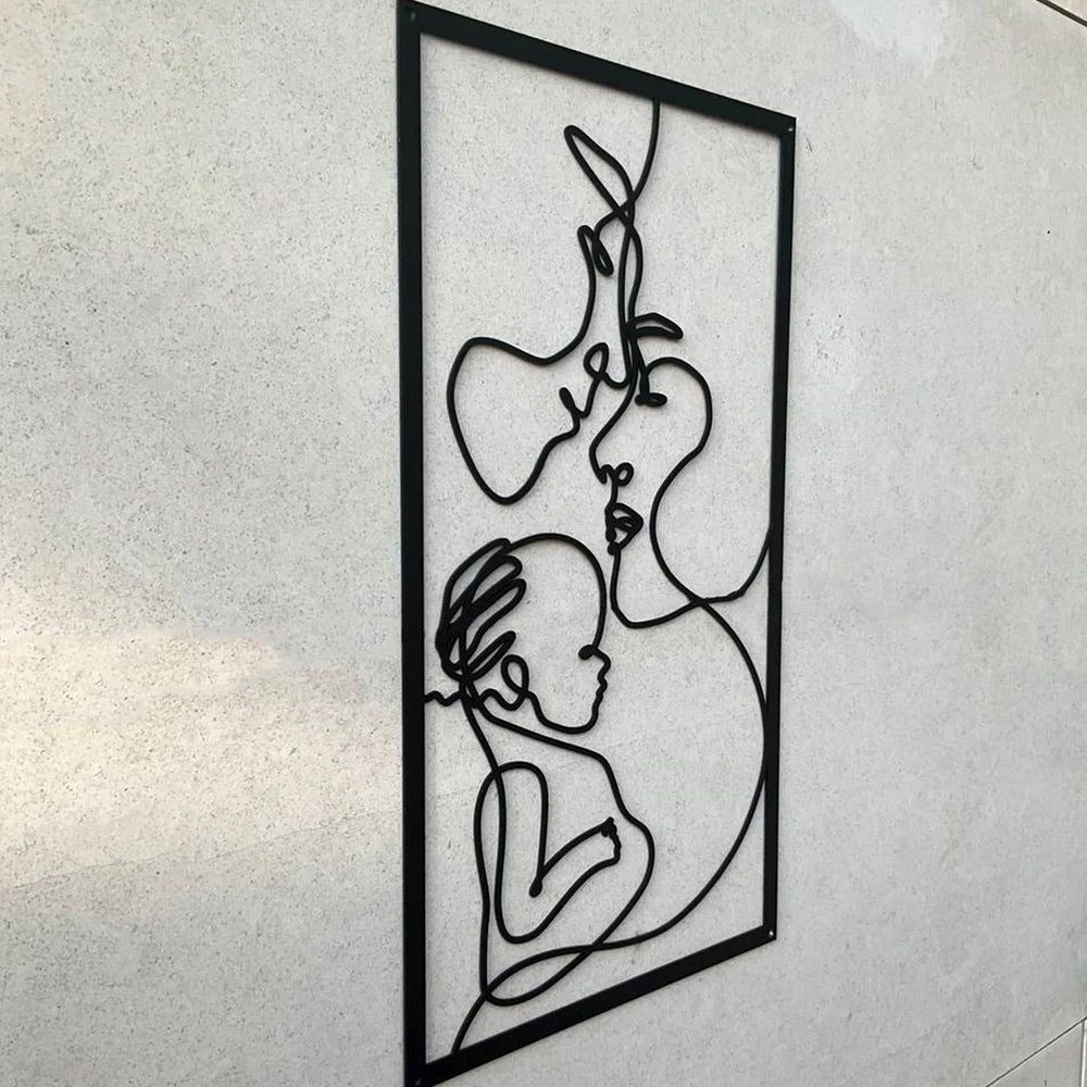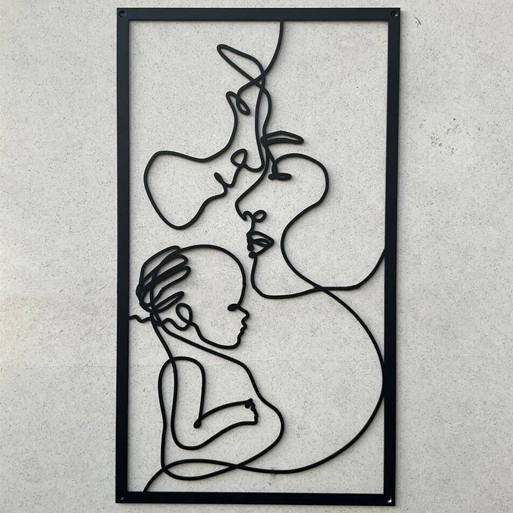 Mother Father Child Figure Minimalist Line Art Metal Wall Art Decoration