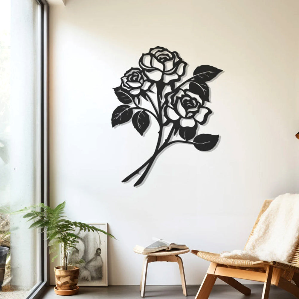Rose Bouquet Elegant Floral Design Metal Wall Art Decoration