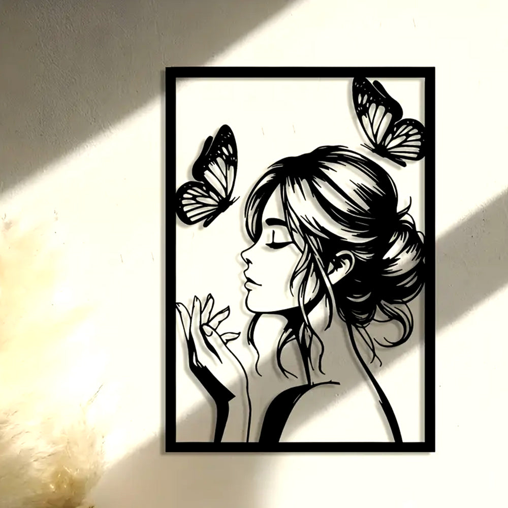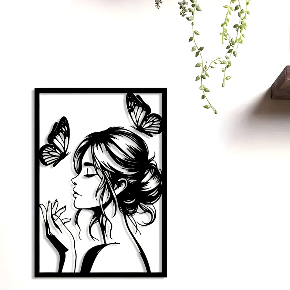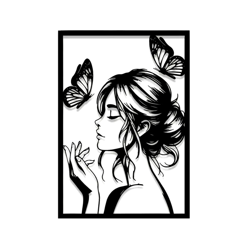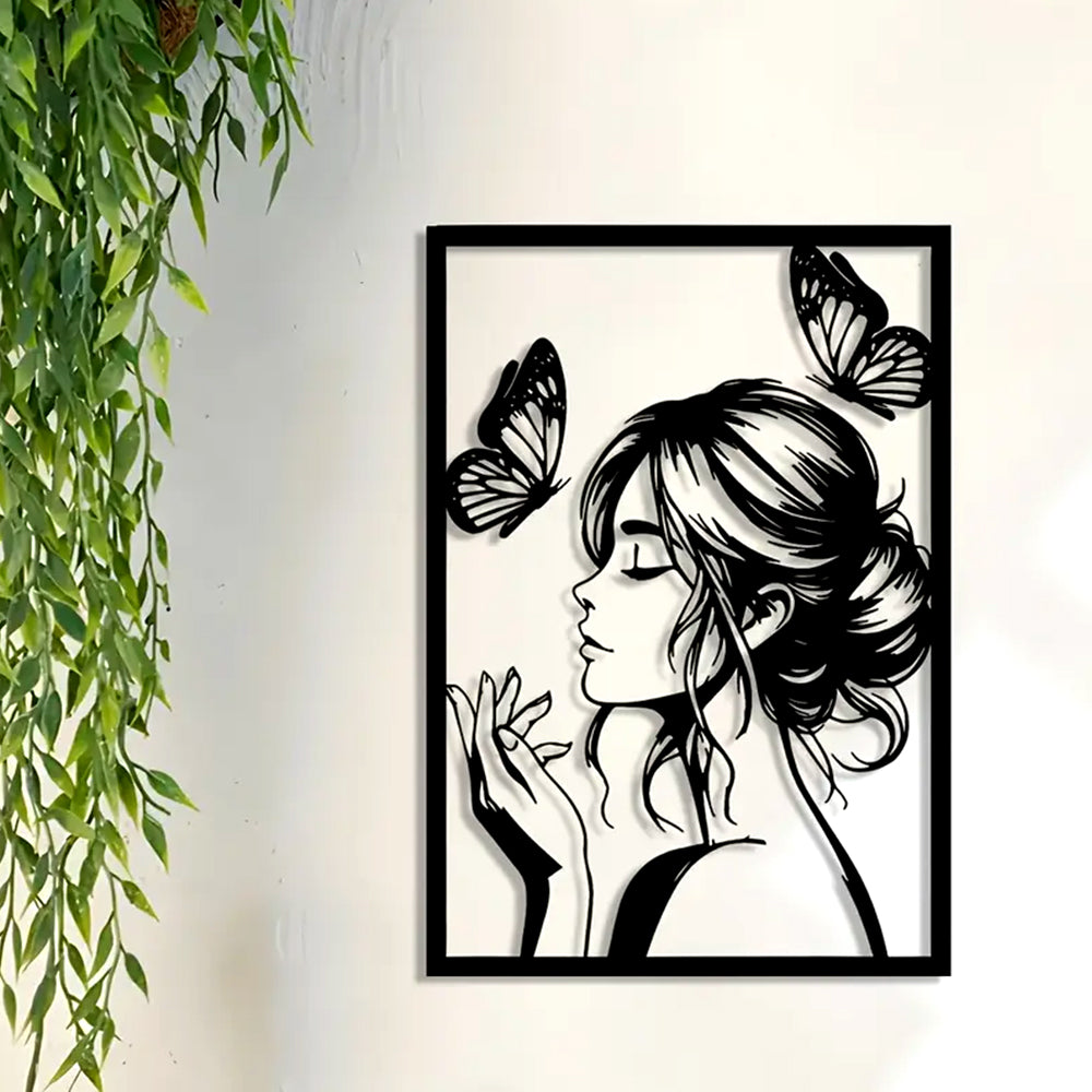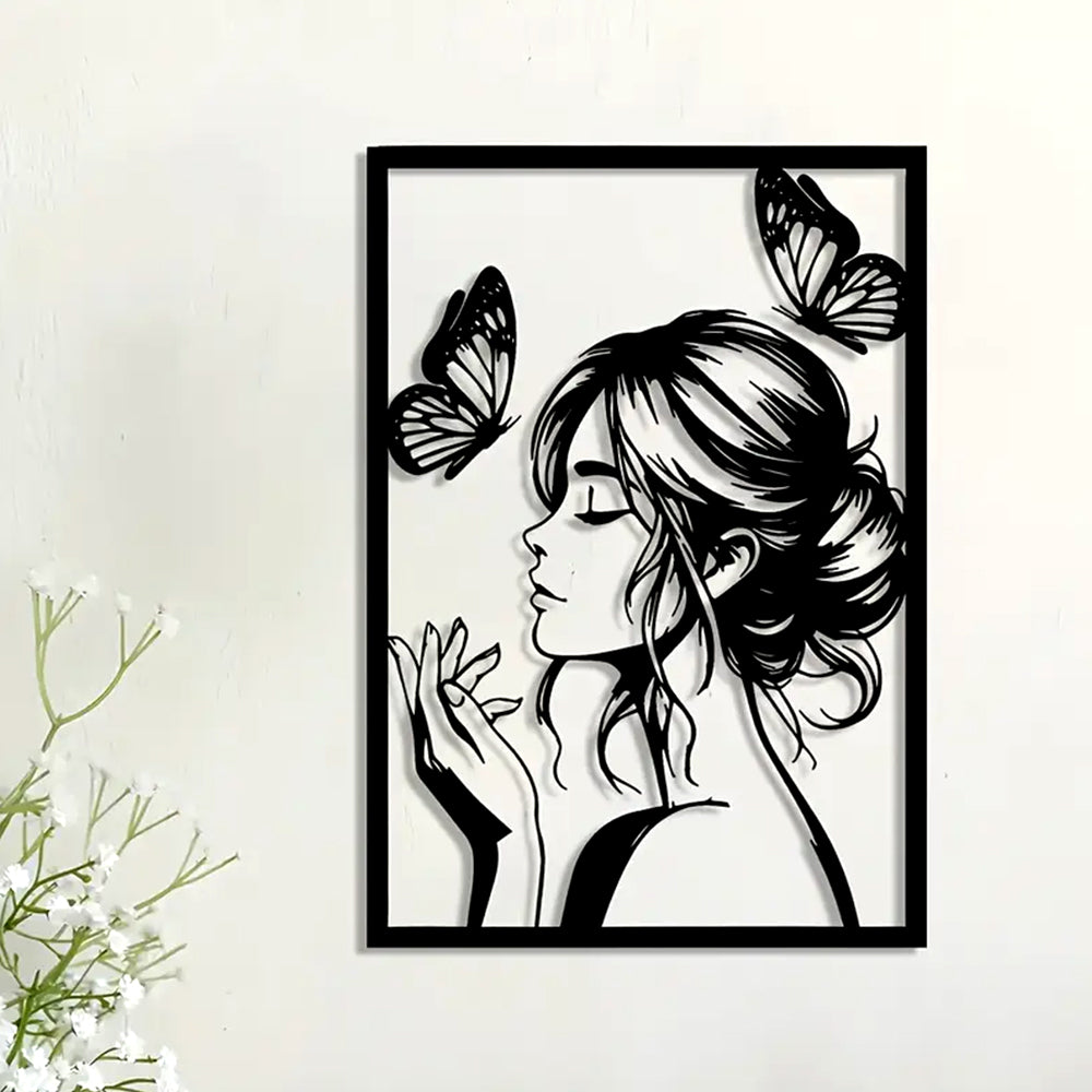Woman and Butterflies Box Frame Metal Wall Art Decoration