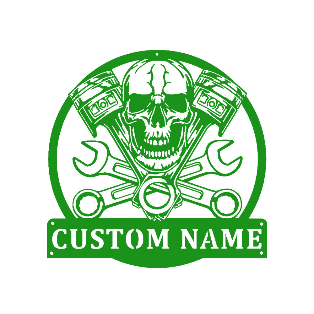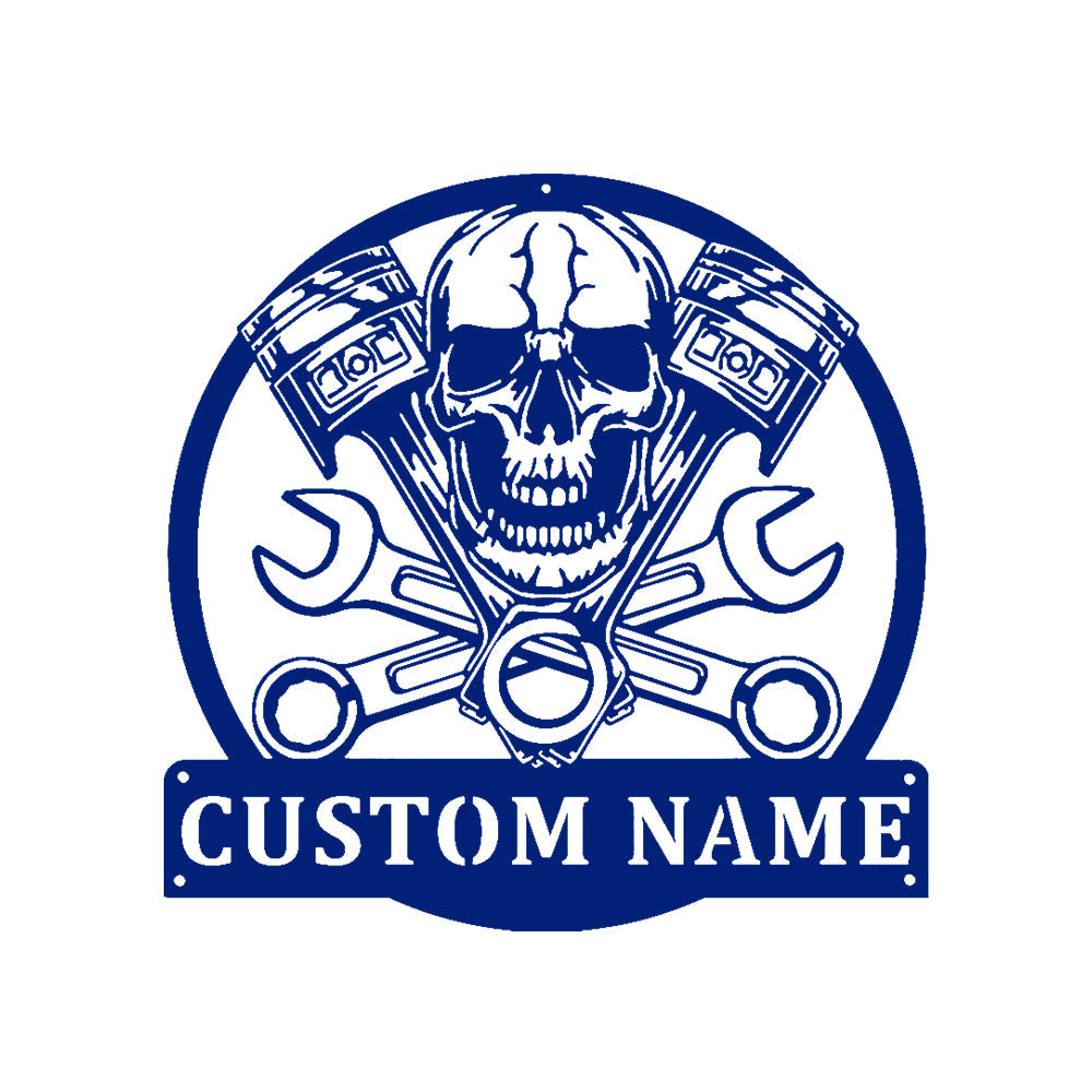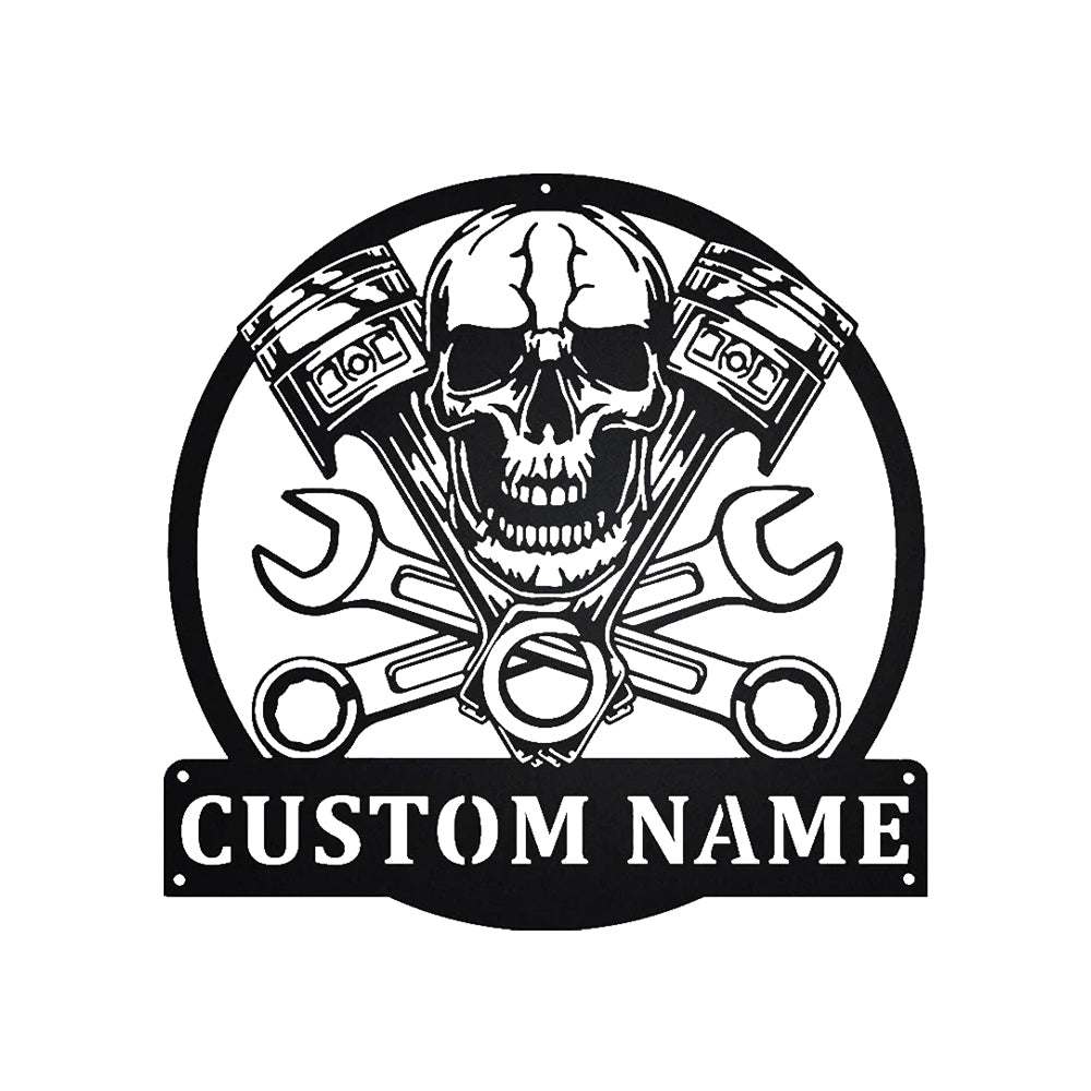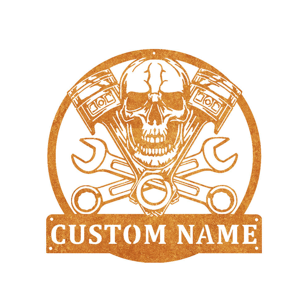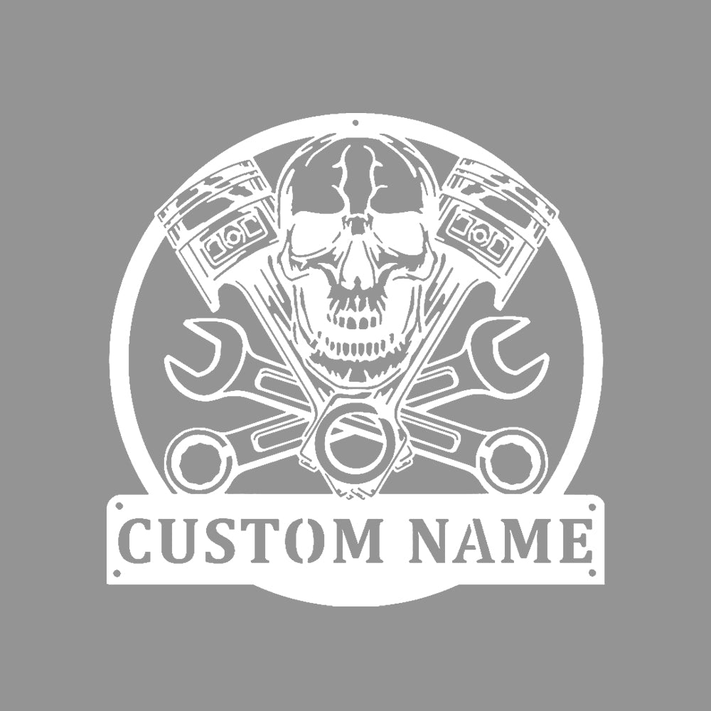 Mechanic Skull Metal Wall Art Custom Name Metal Sign