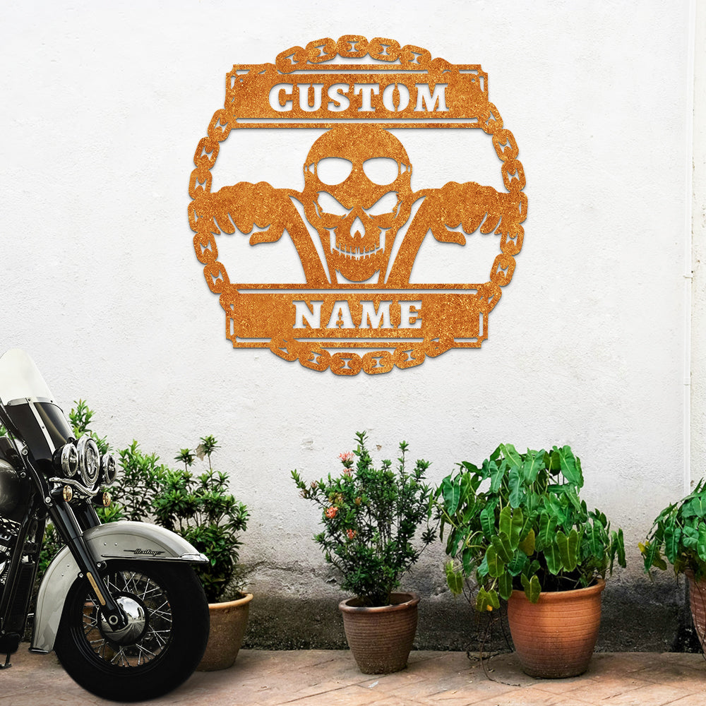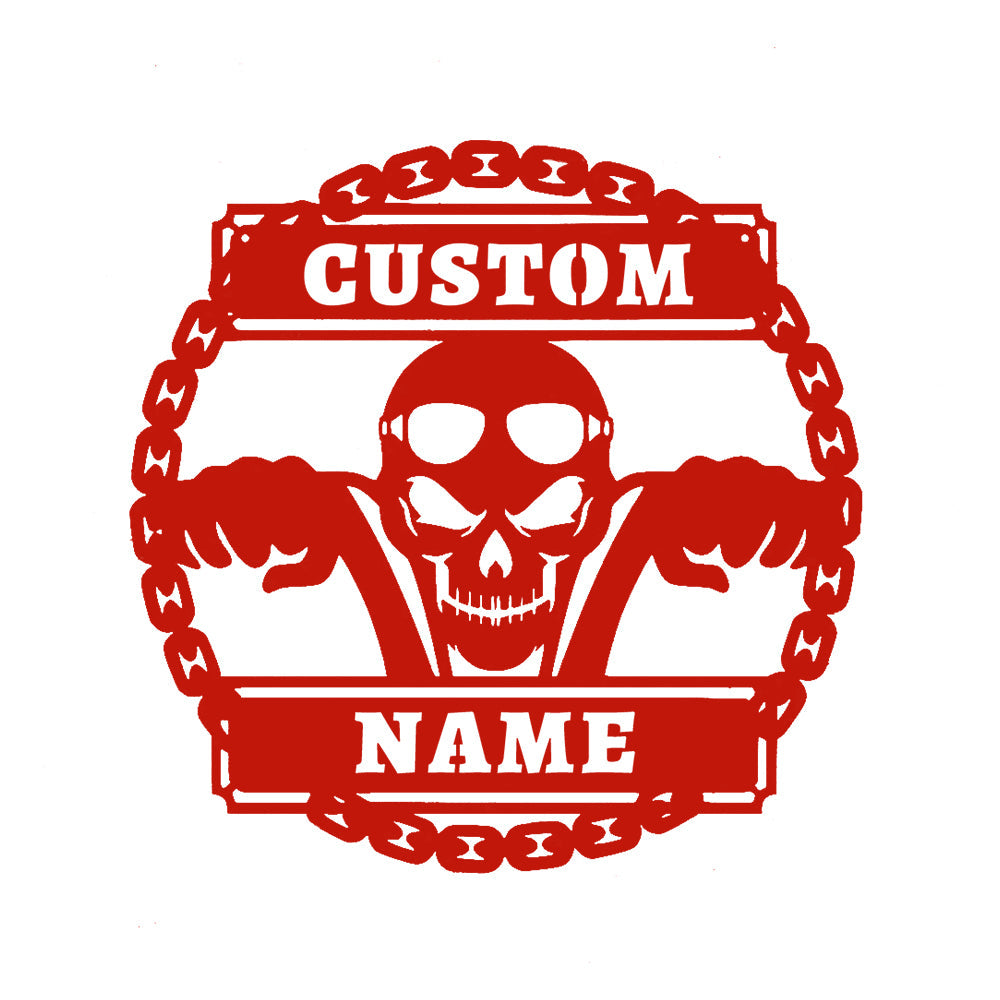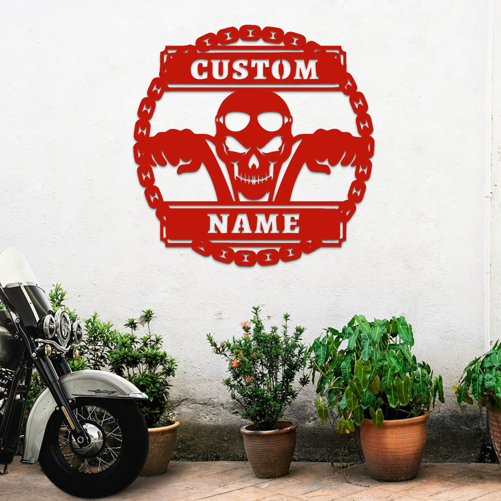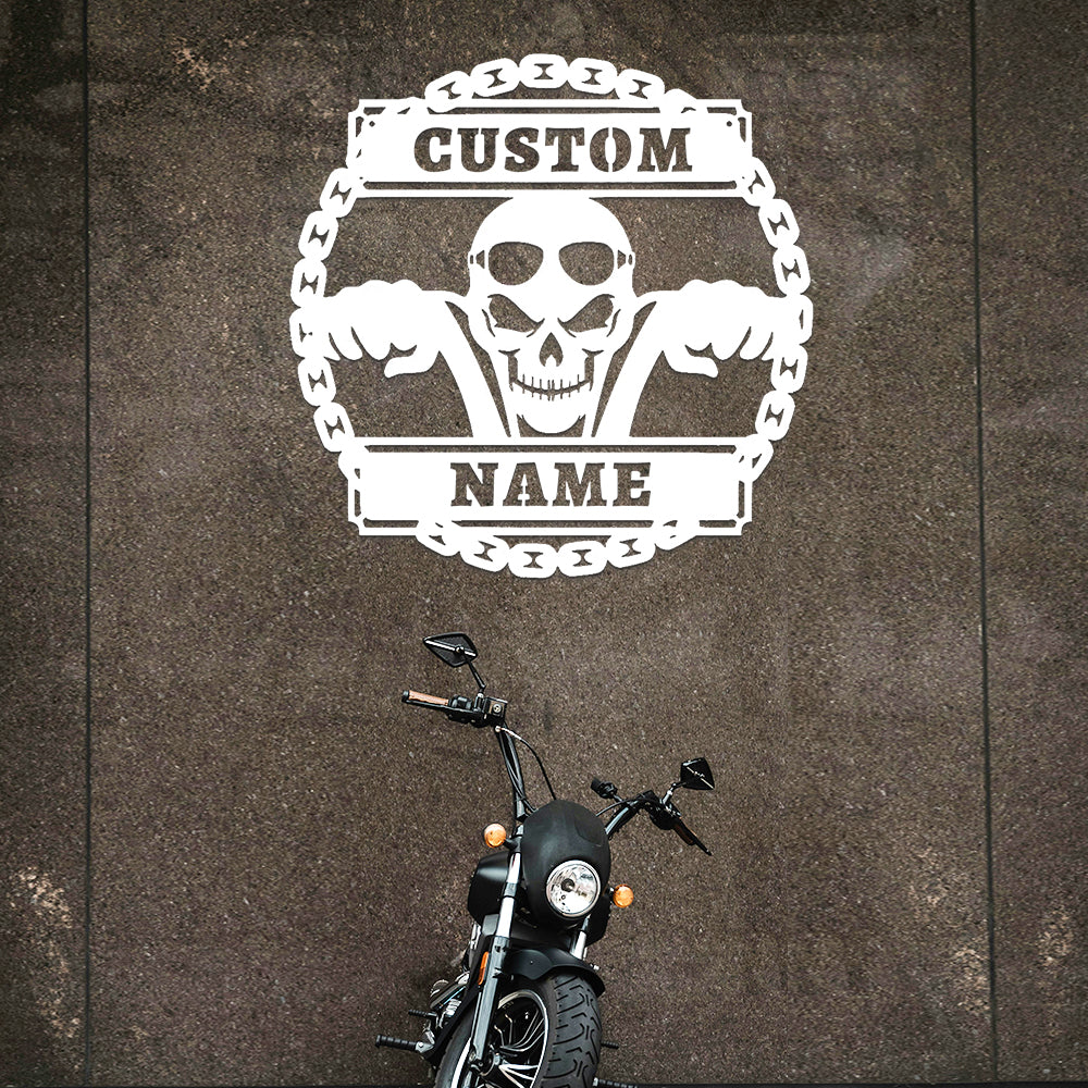Motorcycle Skull Metal Wall Art Custom Name Metal Sign