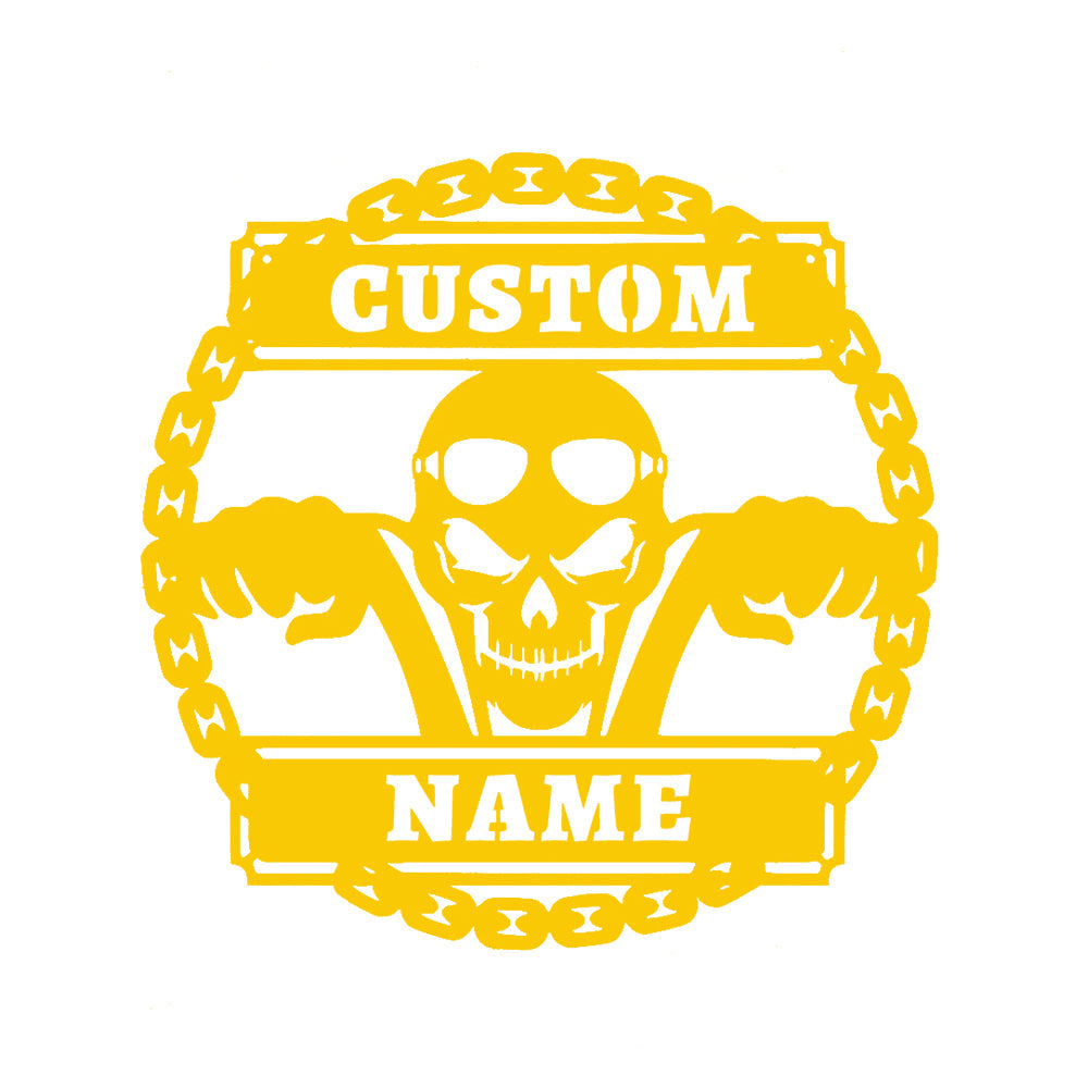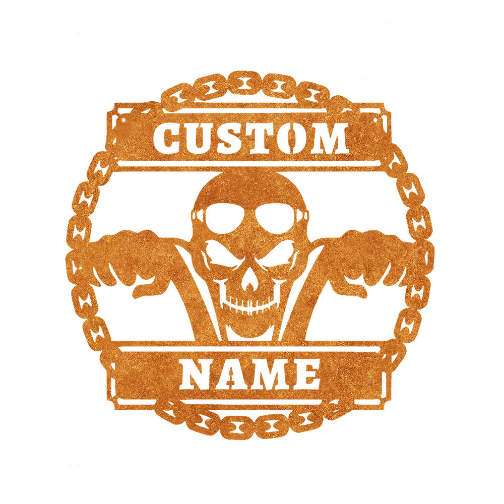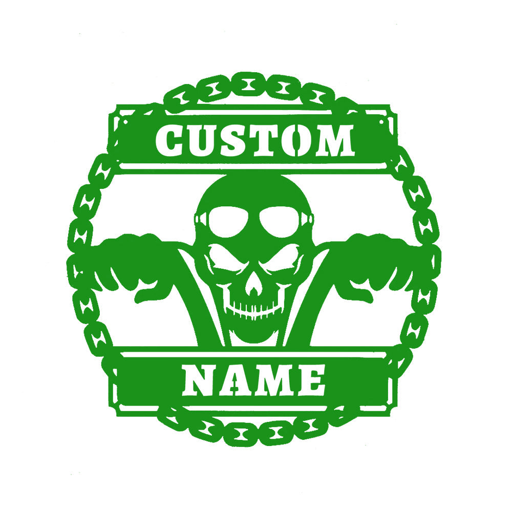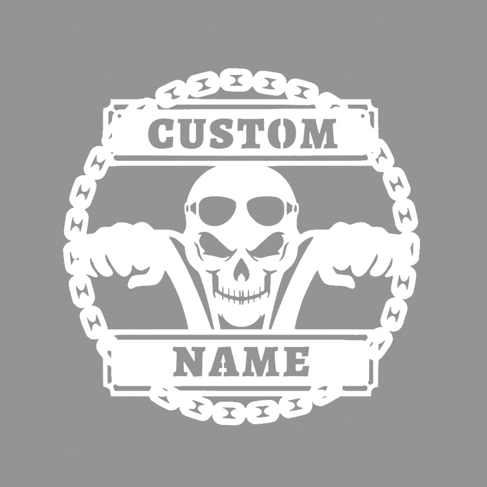 Motorcycle Skull Metal Wall Art Custom Name Metal Sign