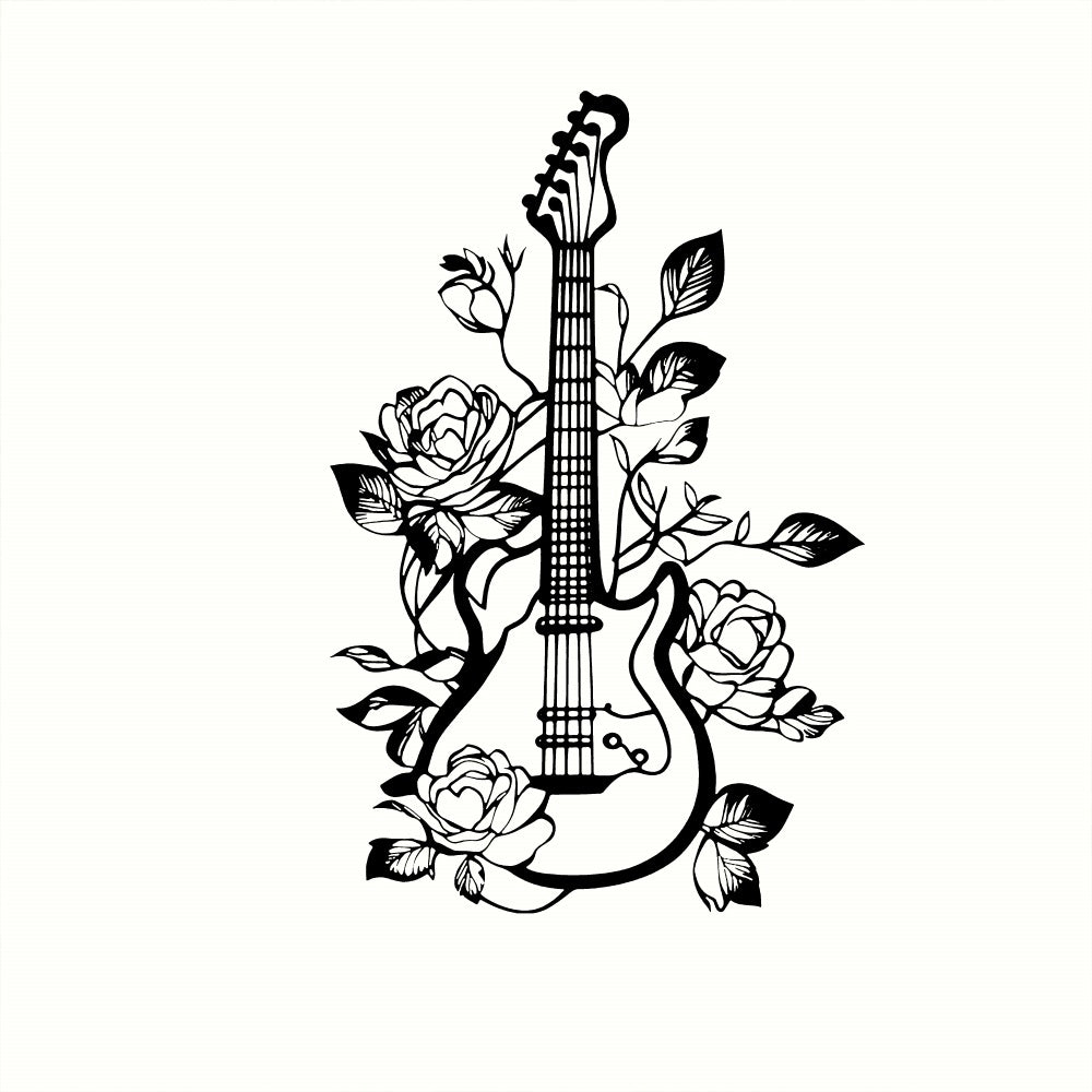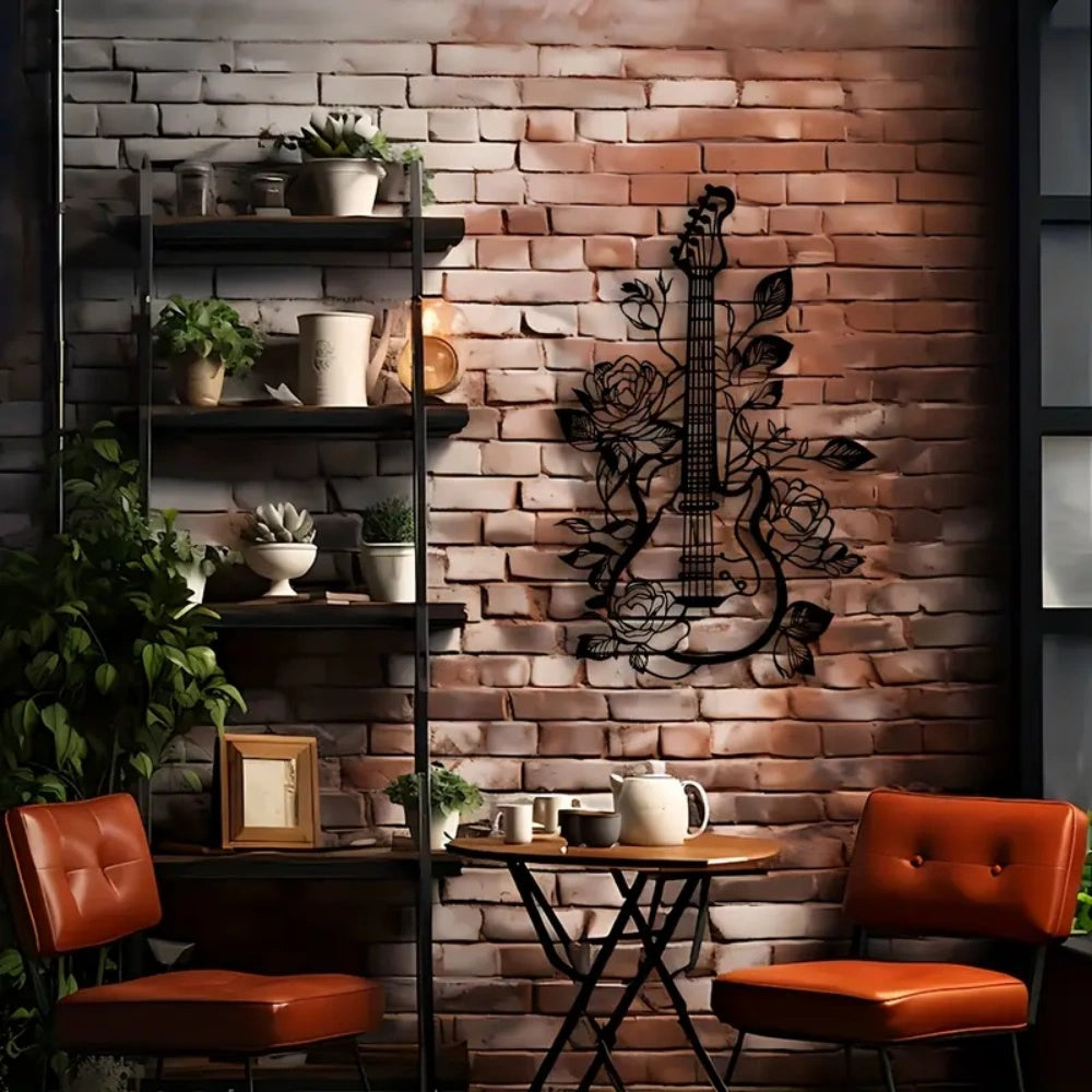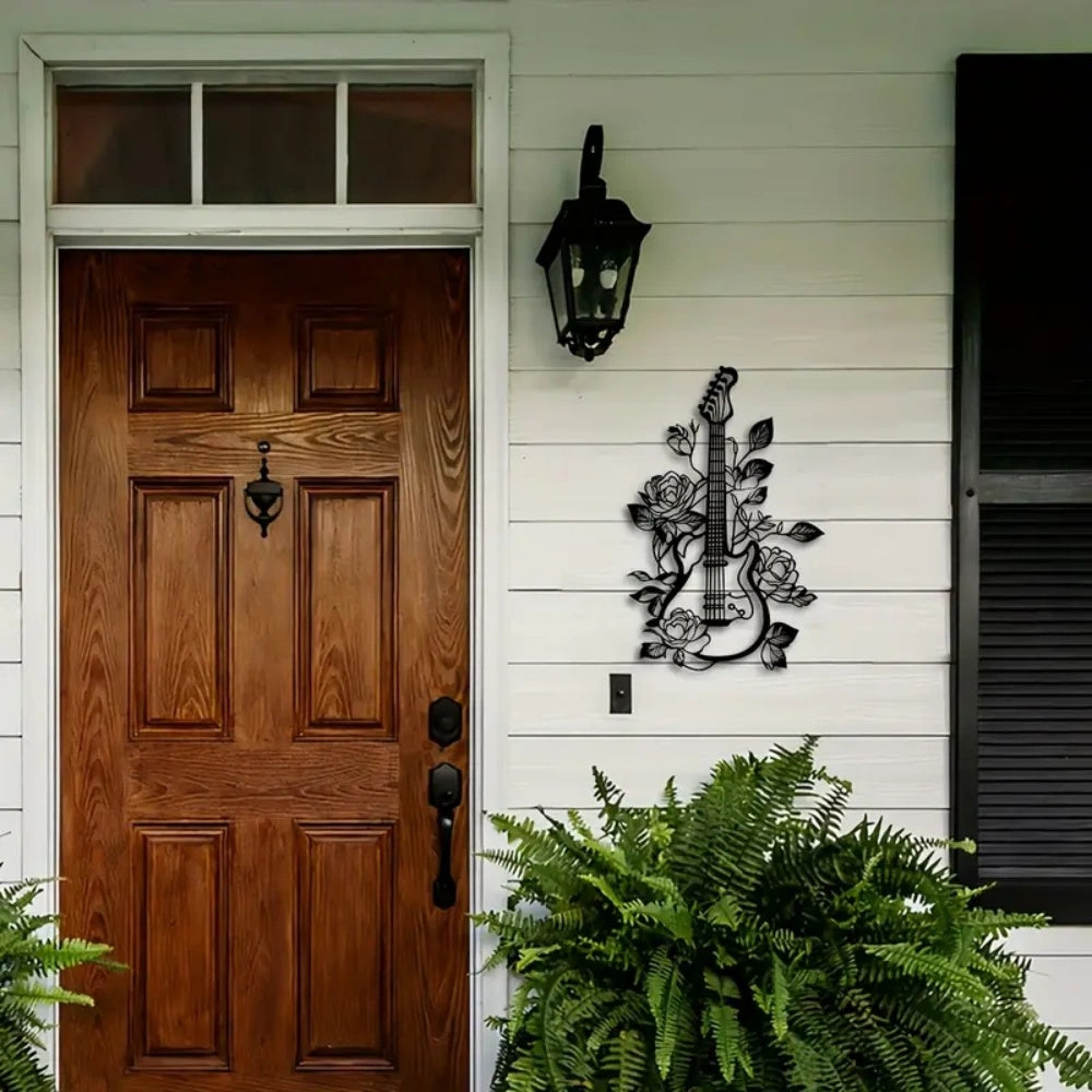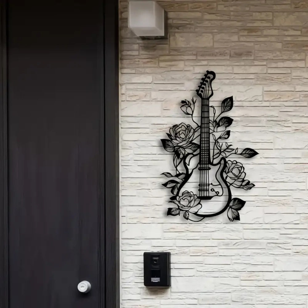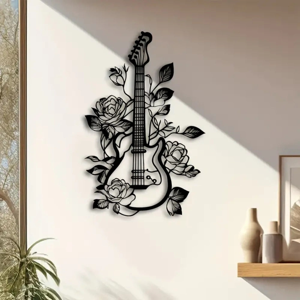 Electric Guitar & Roses Sign Metal Wall Art Decoration
