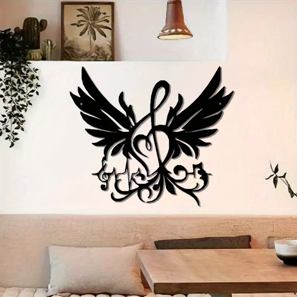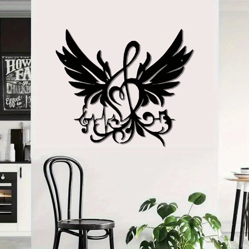 Music Notes with Wings Sign Metal Wall Art Decoration