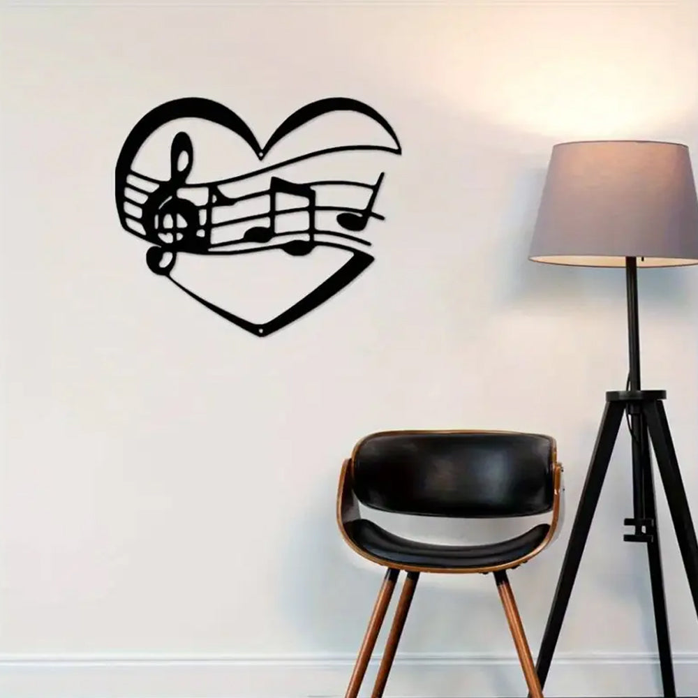 Music Symbol Silhouette Heart Design Sign Metal Wall Art Decoration