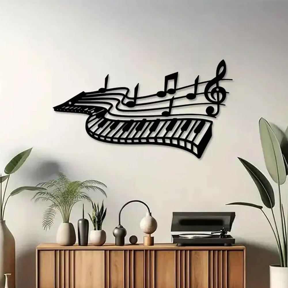Piano with Musical Notes Sign Metal Wall Art Decoration