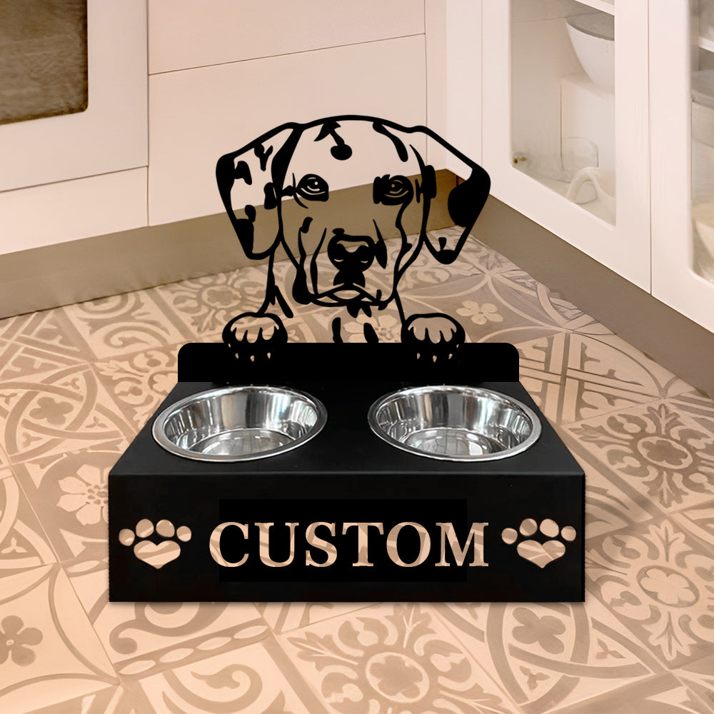 Dalmatian Dog Personalized Name Pet Food Bowl Holder