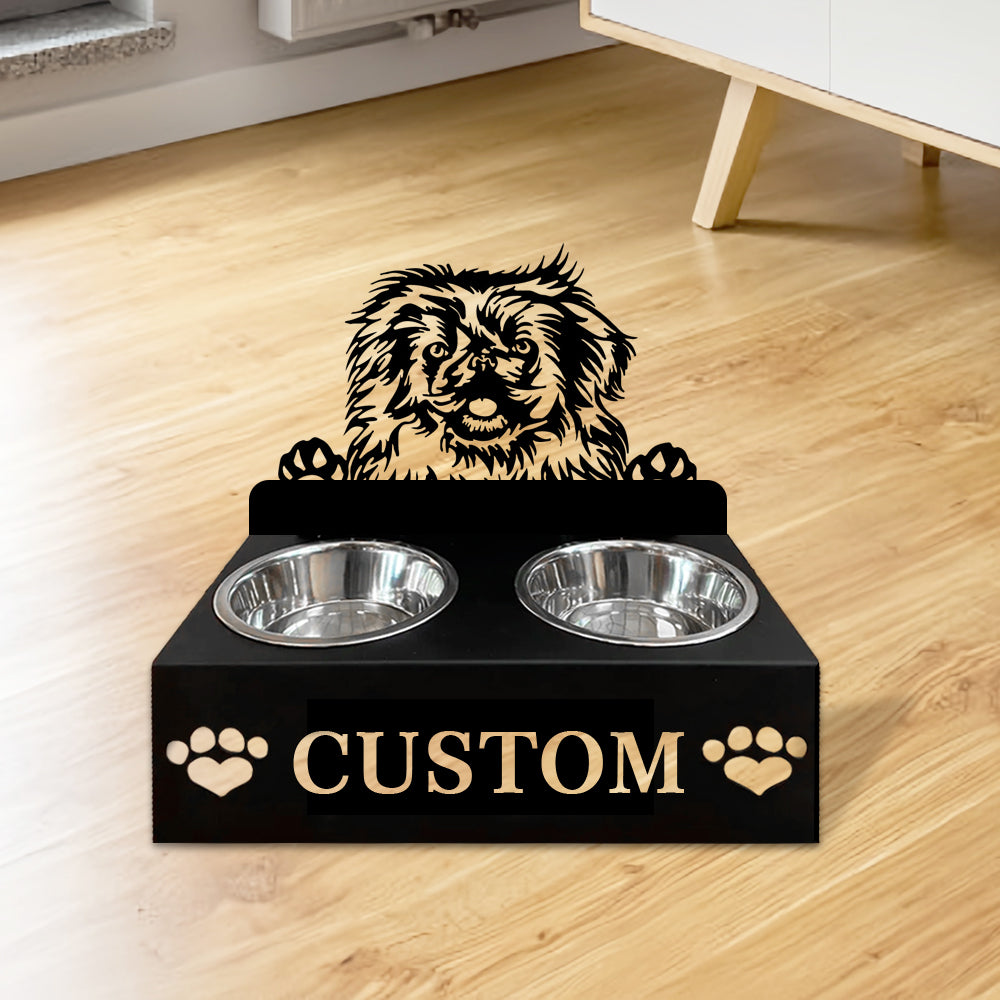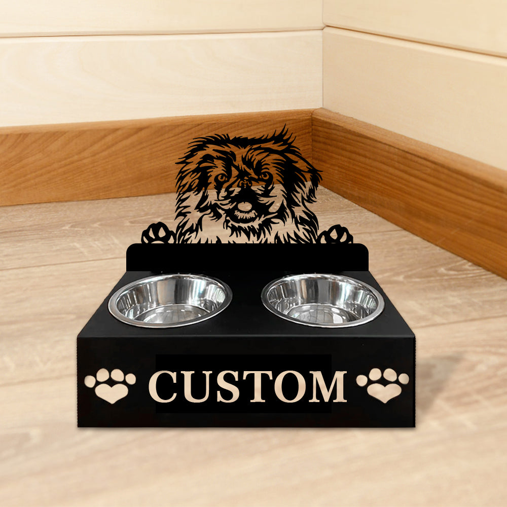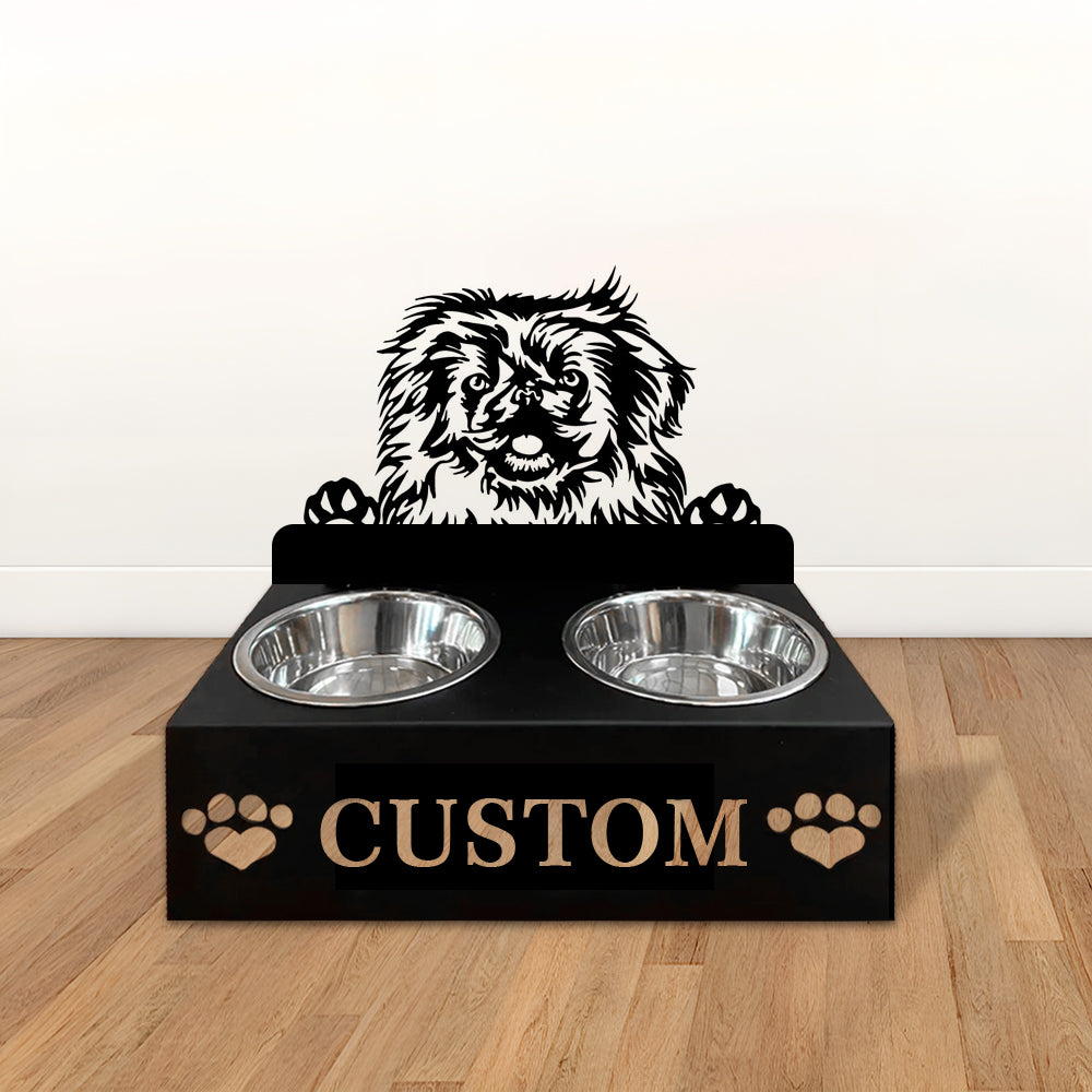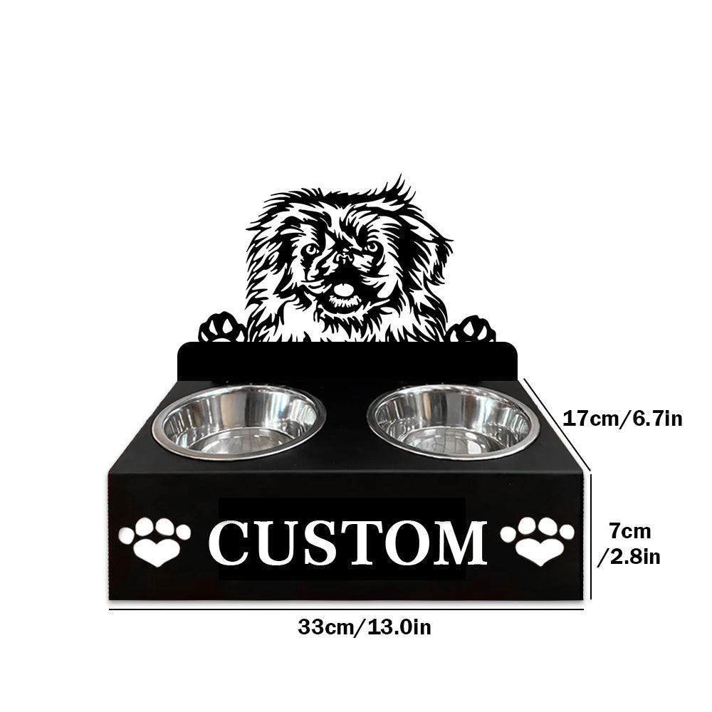 Pekingese Dog Personalized Name Pet Food Bowl Holder