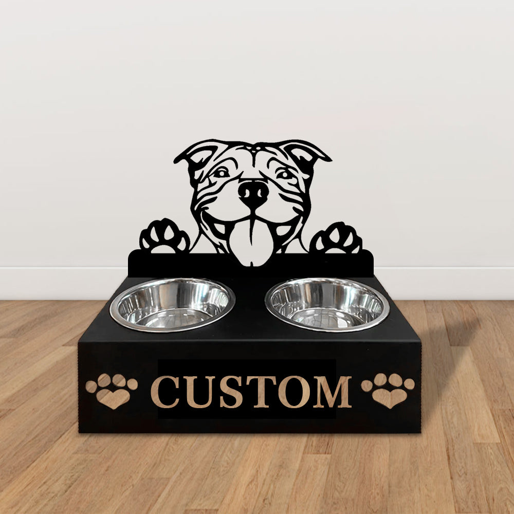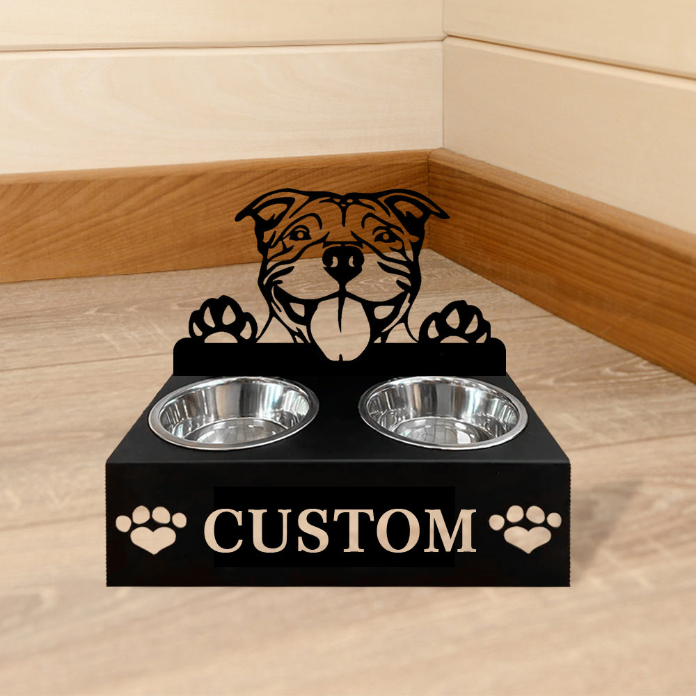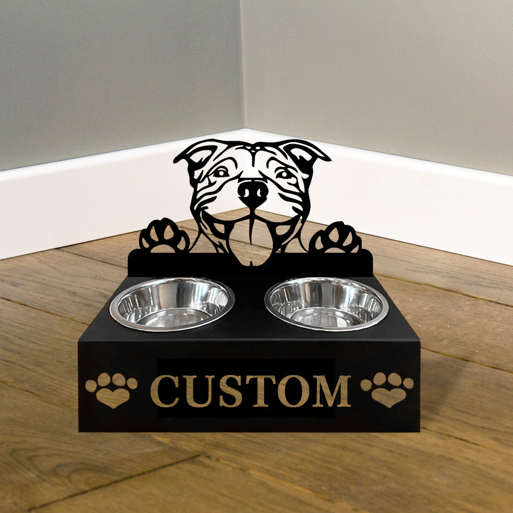 Staffordshire Bull Terrier Personalized Name Pet Food Bowl Holder