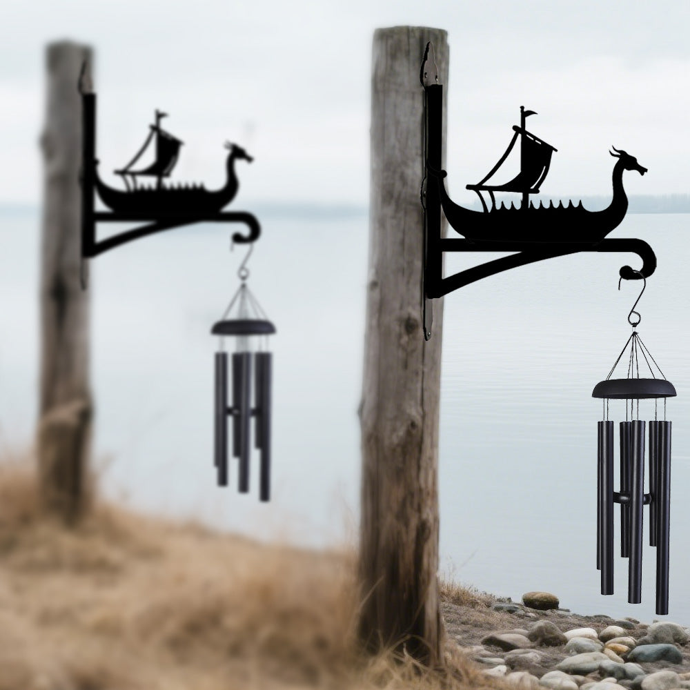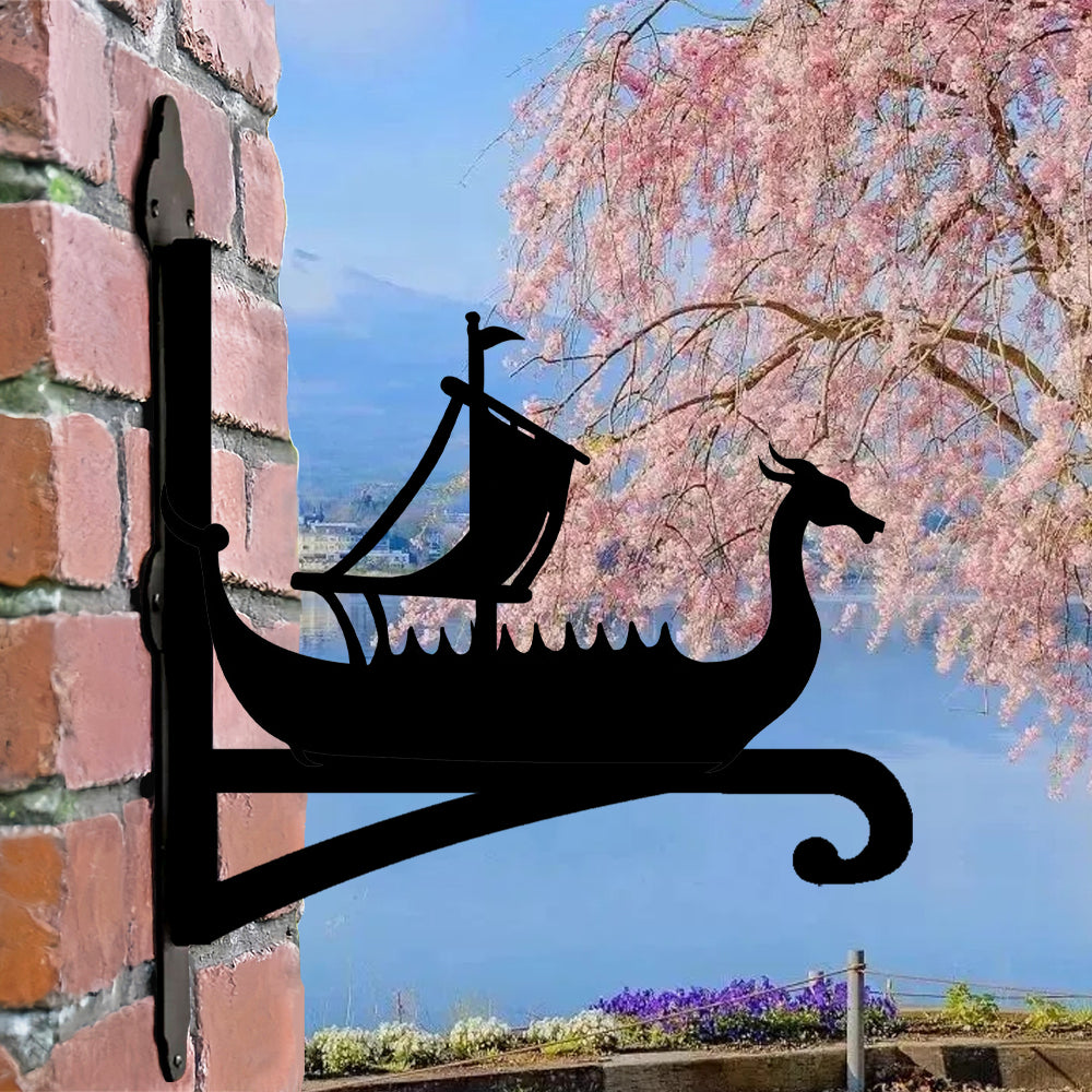Black Viking Ship Metal Hanging Bracket Plant Stand