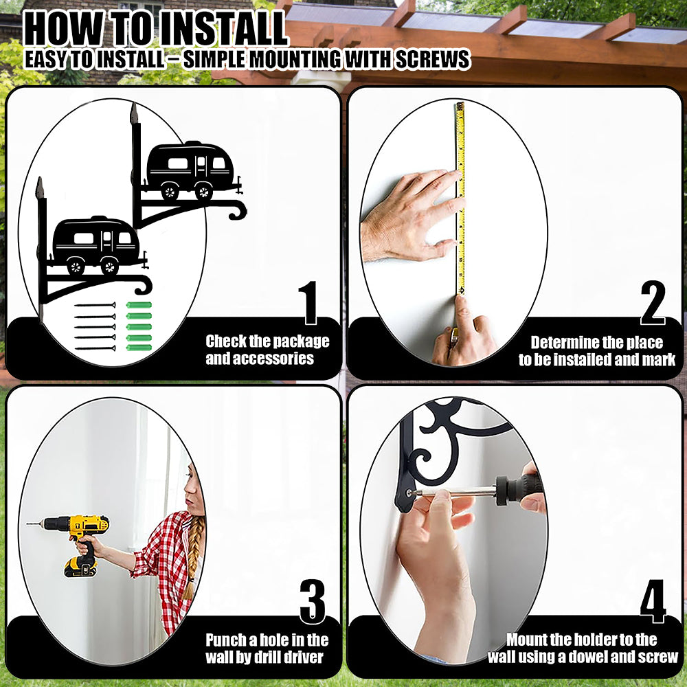 🔨Load-bearing Structure & rust-proof design: We use thickened iron plates material and a triangular fixed design to ensure that the plant hangers provides excellent support; The surface coating is anti-rust baking paint to ensure that the metal hanger has a long lasting life under all weather conditions.