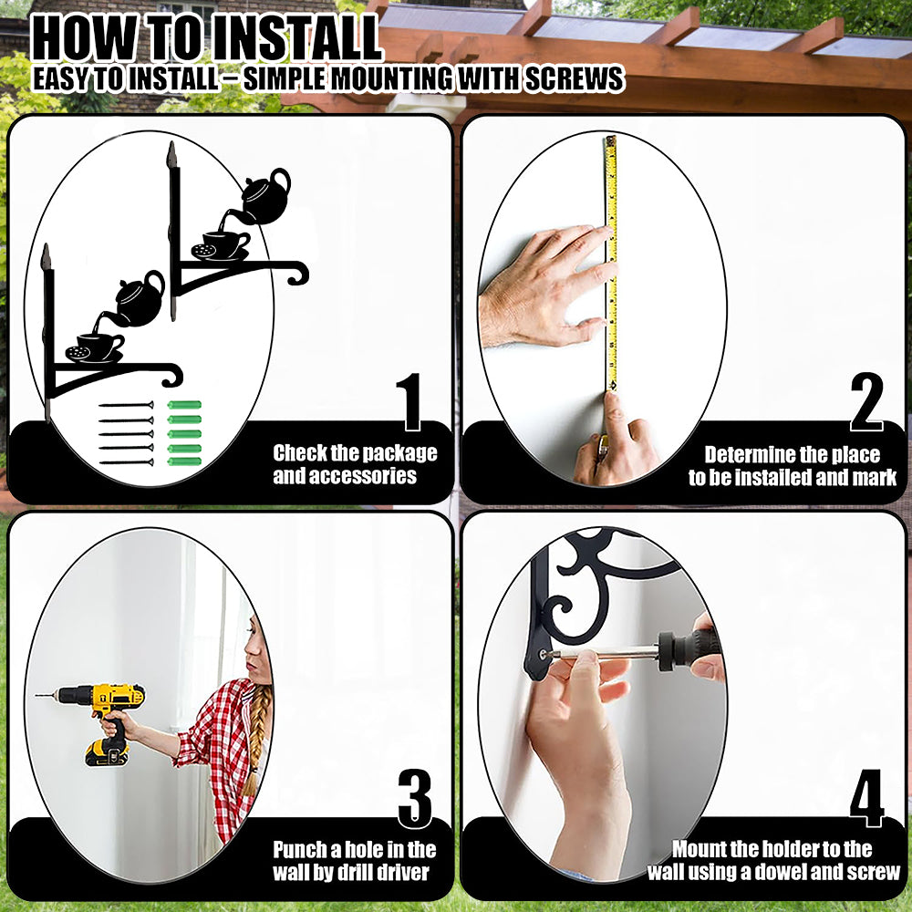 🔨Load-bearing Structure & rust-proof design: We use thickened iron plates material and a triangular fixed design to ensure that the plant hangers provides excellent support; The surface coating is anti-rust baking paint to ensure that the metal hanger has a long lasting life under all weather conditions.