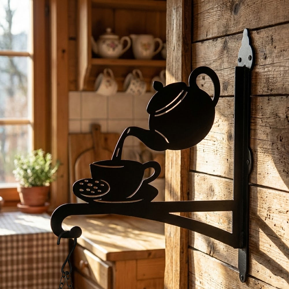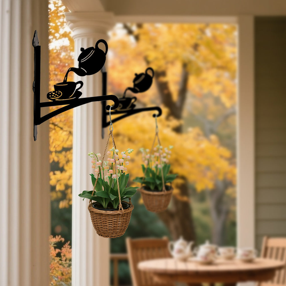 Teapot and Cup Metal Hanging Bracket Plant Stand