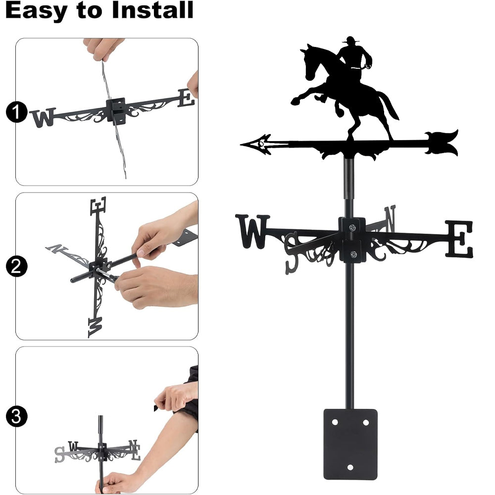 💕Creative design: This Weathervane is made of high-quality Stainless Steel. With stylish straight lines and satin black finishes. This anti-rust iron weather vane is decorated with exquisite patterns.