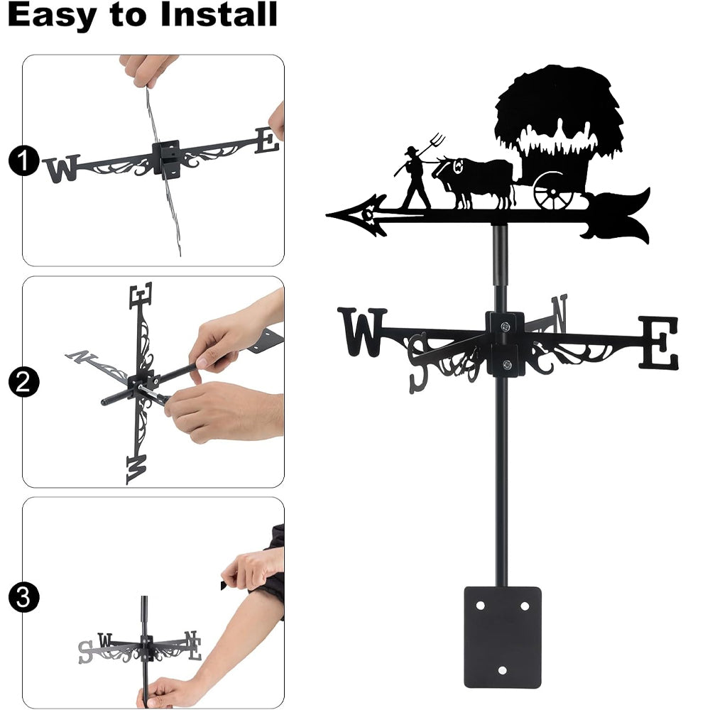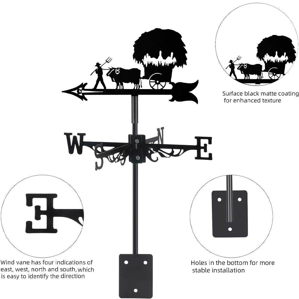 💕Creative design: This Weathervane is made of high-quality Stainless Steel. With stylish straight lines and satin black finishes. This anti-rust iron weather vane is decorated with exquisite patterns.
