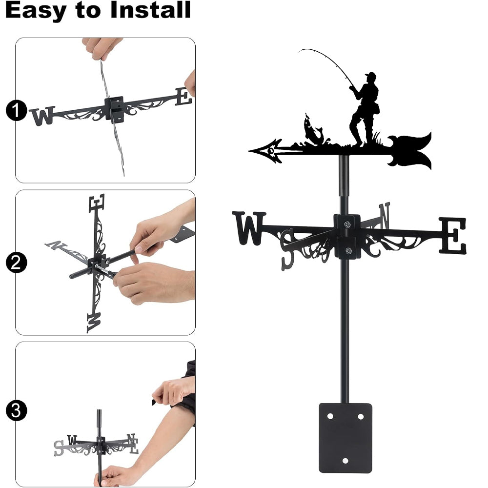 💕Creative design: This Weathervane is made of high-quality Stainless Steel. With stylish straight lines and satin black finishes. This anti-rust iron weather vane is decorated with exquisite patterns.