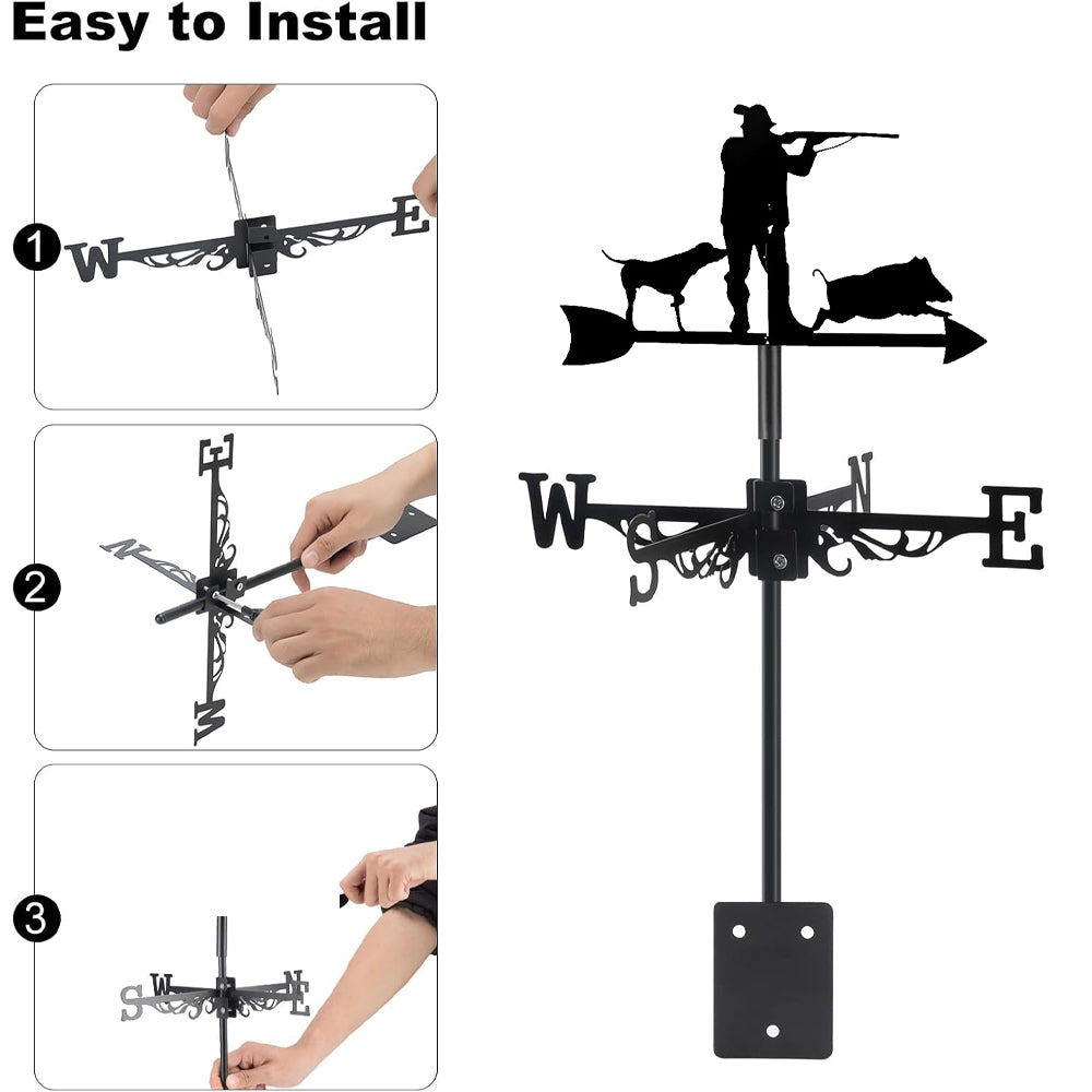💕Creative design: This Weathervane is made of high-quality Stainless Steel. With stylish straight lines and satin black finishes. This anti-rust iron weather vane is decorated with exquisite patterns.