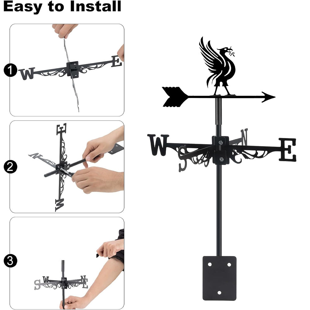 💕Creative design: This Weathervane is made of high-quality Stainless Steel. With stylish straight lines and satin black finishes. This anti-rust iron weather vane is decorated with exquisite patterns.