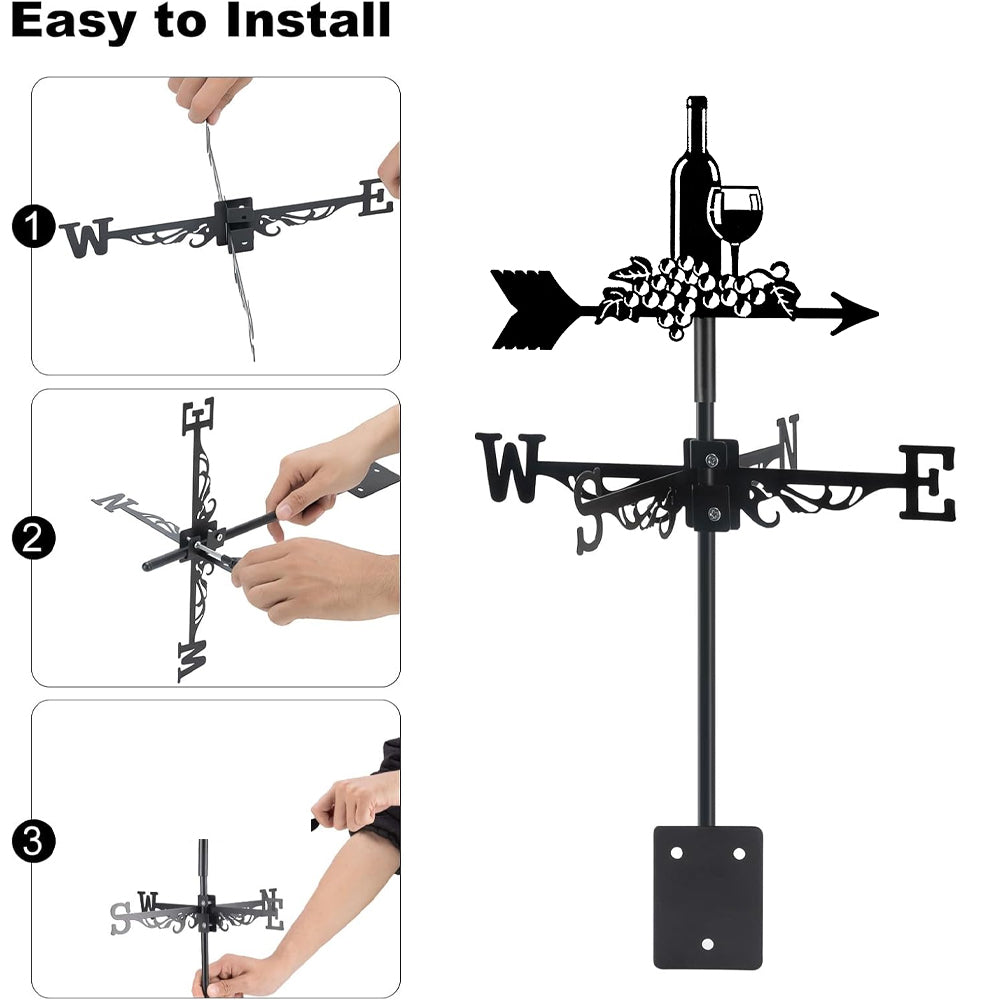 💕Creative design: This Weathervane is made of high-quality Stainless Steel. With stylish straight lines and satin black finishes. This anti-rust iron weather vane is decorated with exquisite patterns.