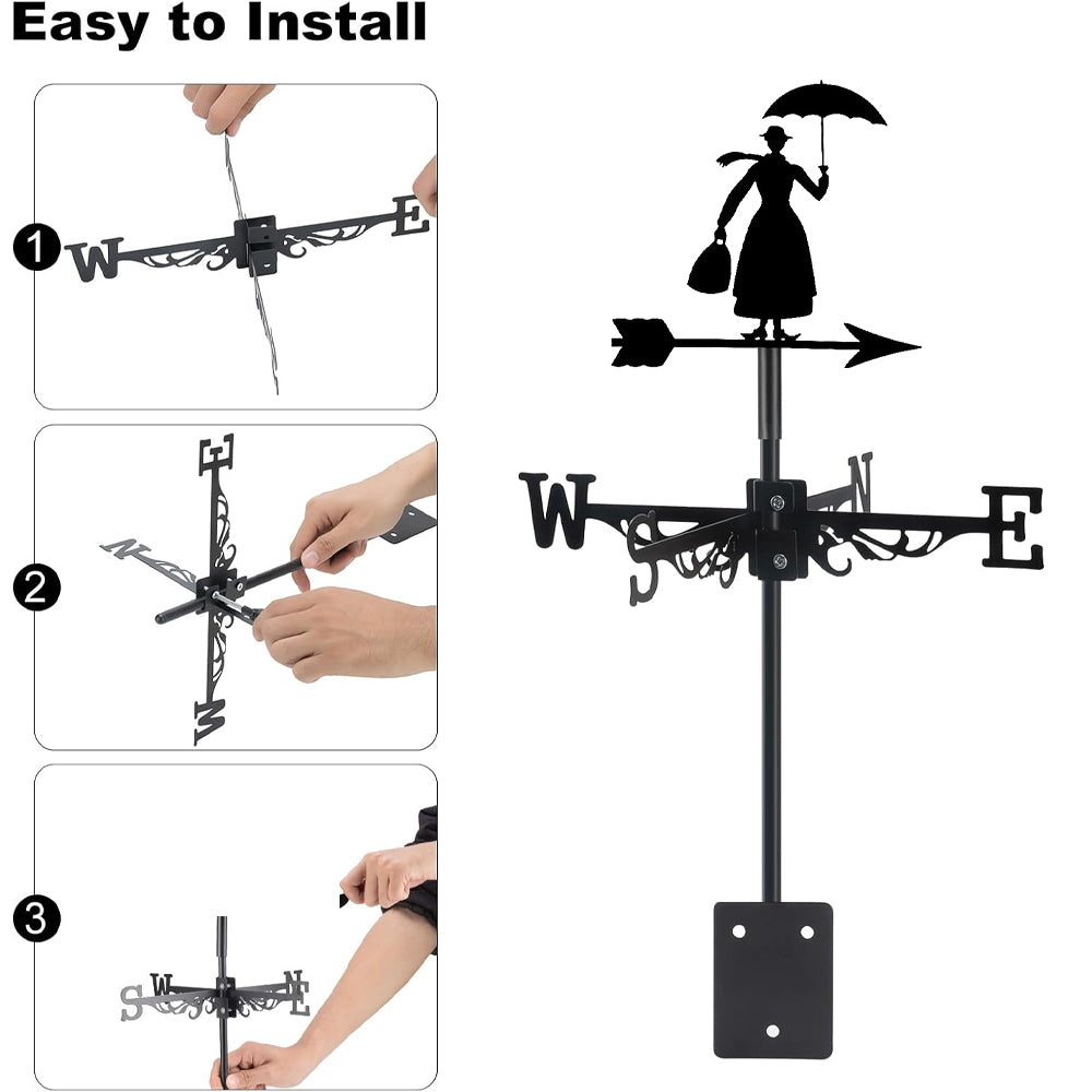 💕Creative design: This Weathervane is made of high-quality Stainless Steel. With stylish straight lines and satin black finishes. This anti-rust iron weather vane is decorated with exquisite patterns.