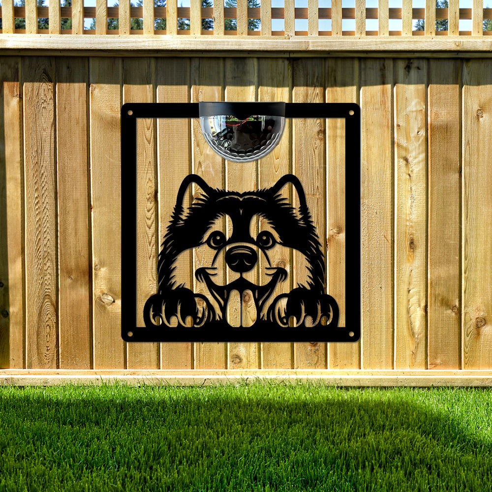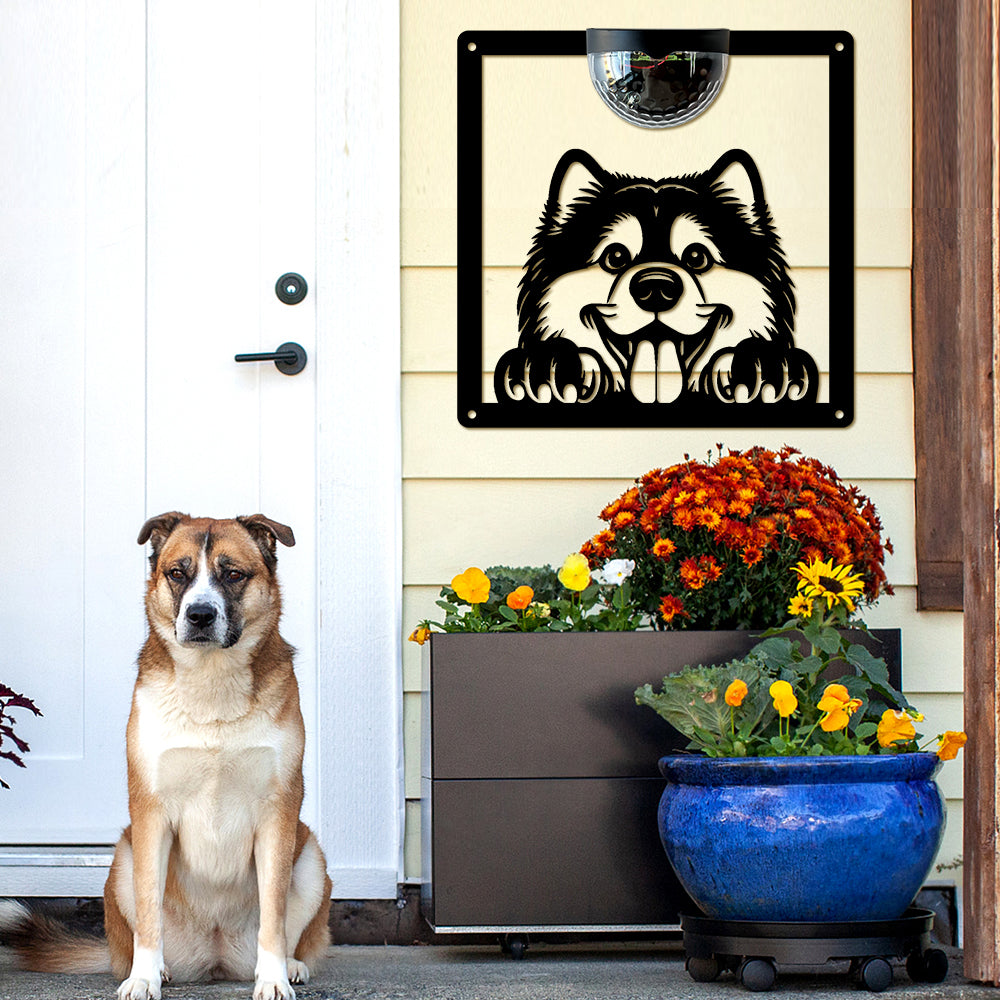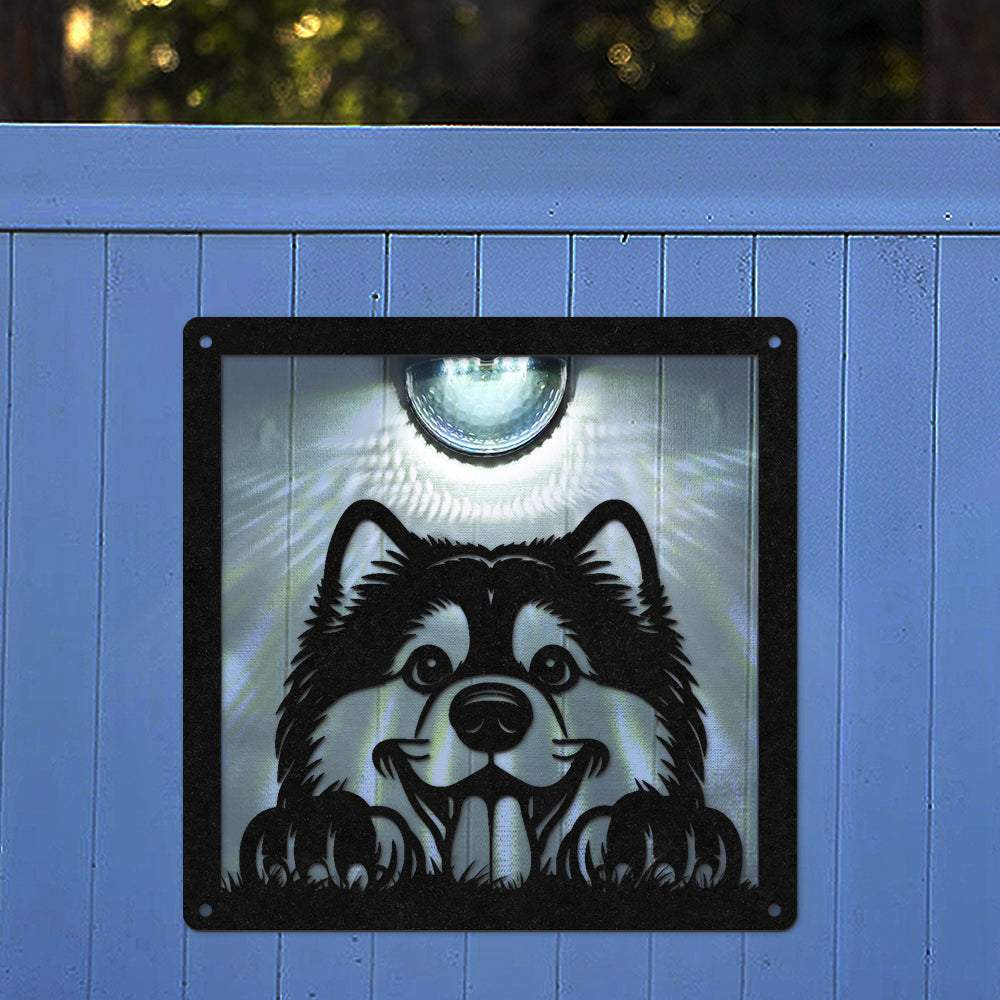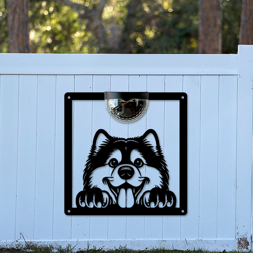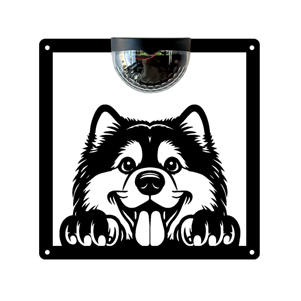 Alaskan Malamute Dog Metal Wall Art With Solar Light Solar Wall Plaques
