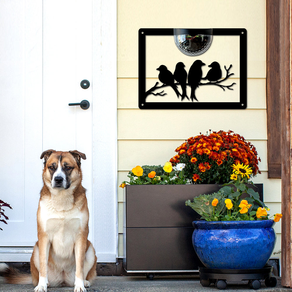 Birds Metal Wall Art With Solar Light Solar Wall Plaques