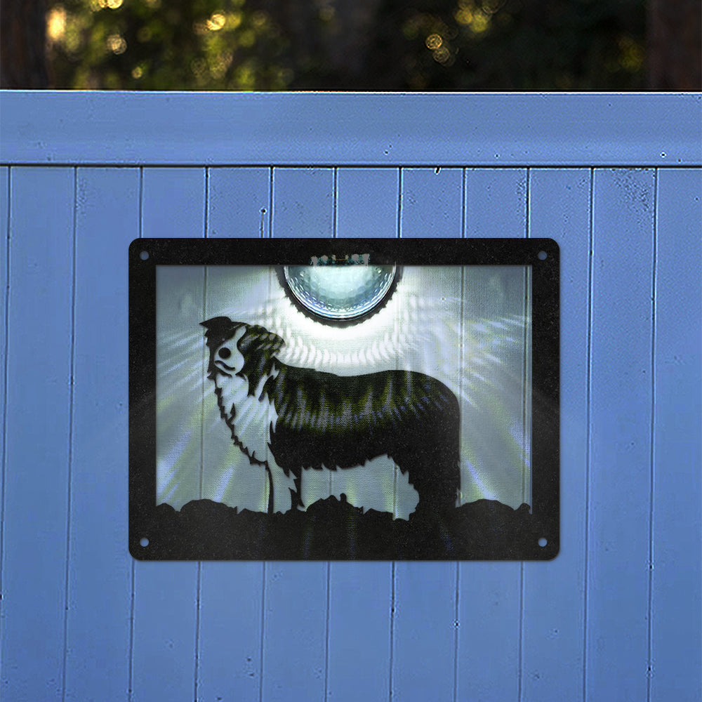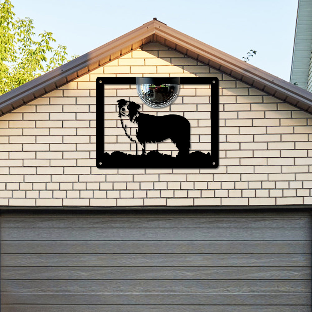 Border Collie Metal Wall Art With Solar Light Solar Wall Plaques