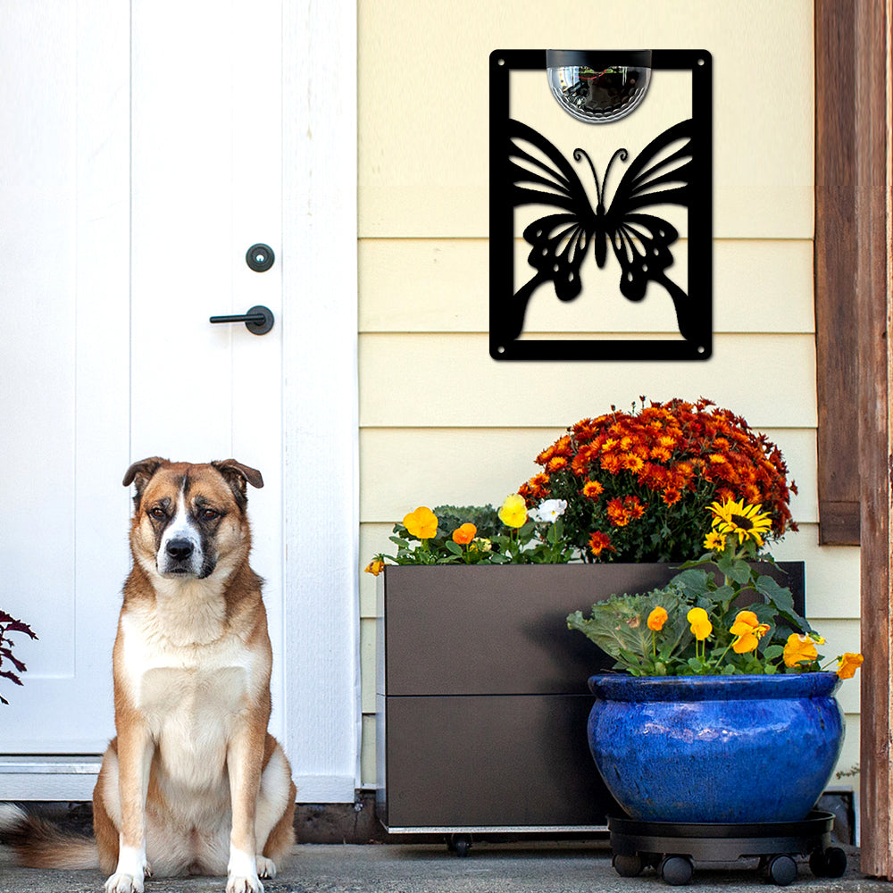 Butterfly Metal Wall Art With Solar Light Solar Wall Plaques