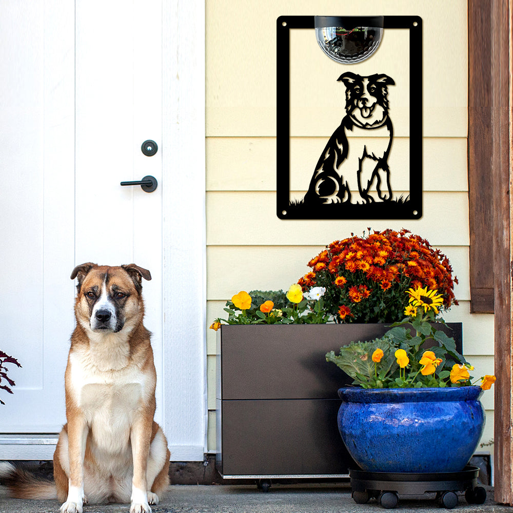 Collie Metal Wall Art With Solar Light Solar Wall Plaques